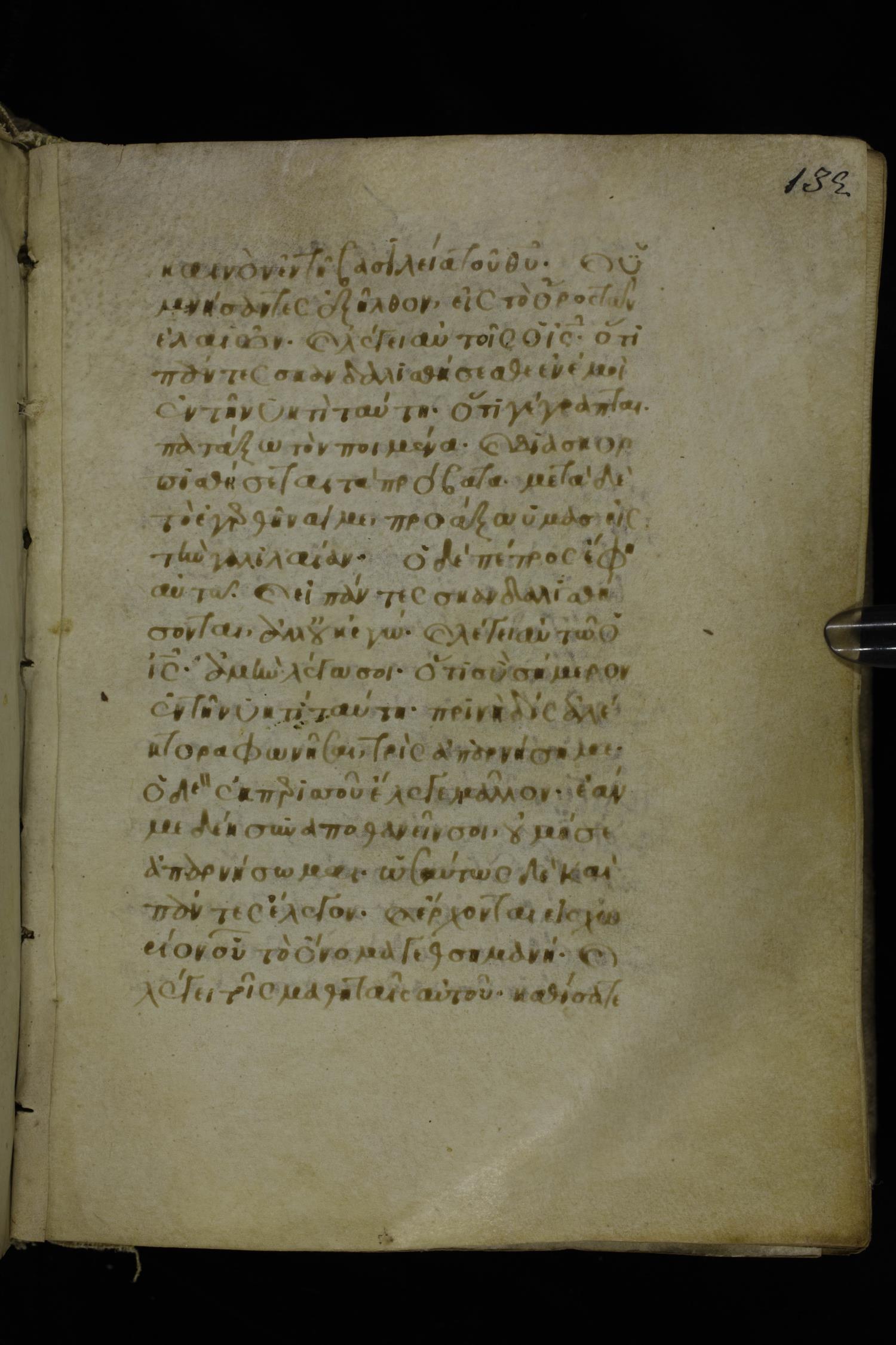 Fourteenth century minuscule of the Gospels on parchment; 302 leaves, 1 column, 19-21 lines per column. Images were taken at the National Library of Greece in Athens.