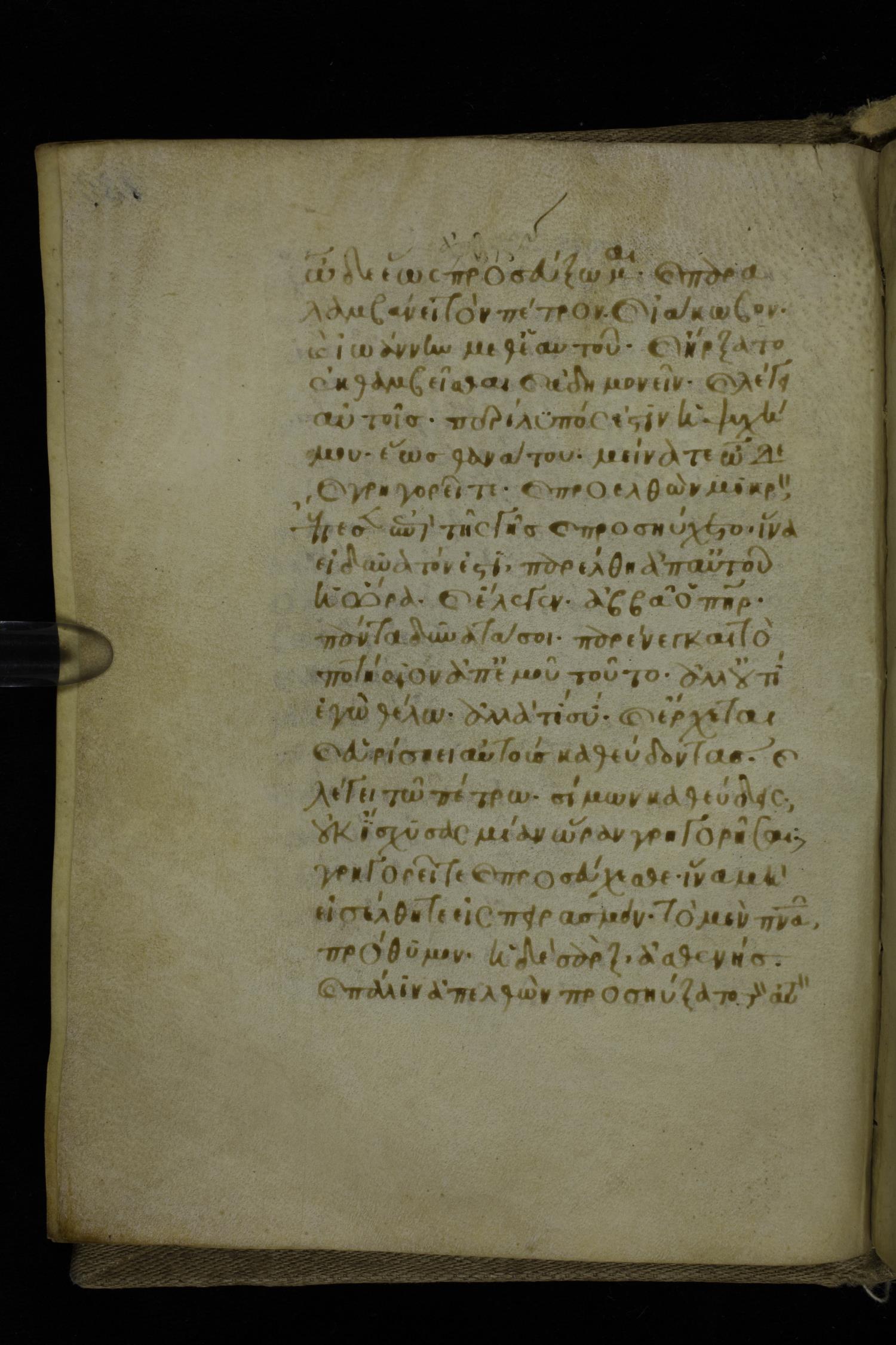 Fourteenth century minuscule of the Gospels on parchment; 302 leaves, 1 column, 19-21 lines per column. Images were taken at the National Library of Greece in Athens.
