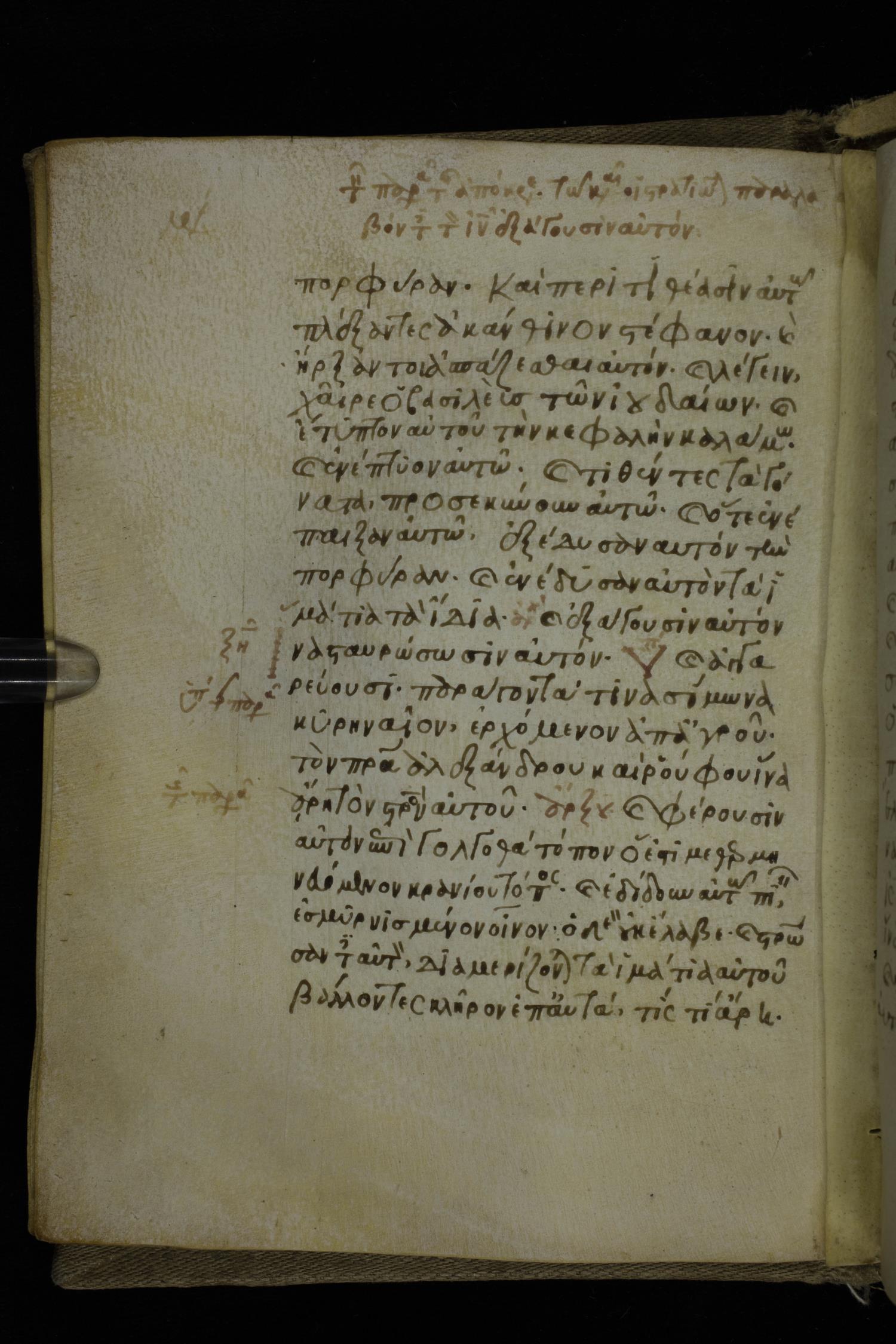 Fourteenth century minuscule of the Gospels on parchment; 302 leaves, 1 column, 19-21 lines per column. Images were taken at the National Library of Greece in Athens.