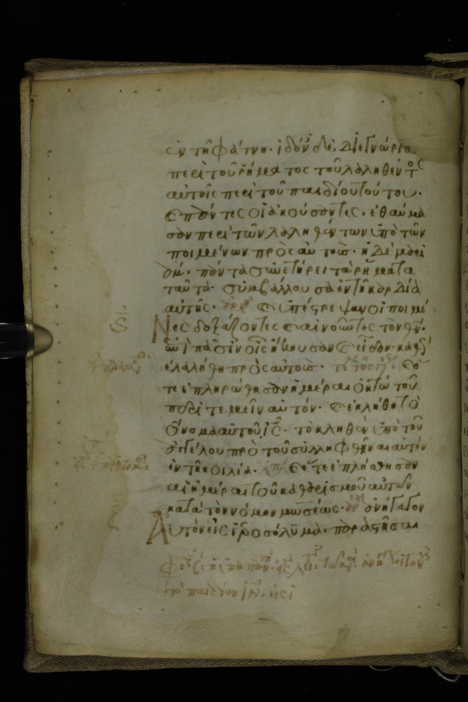 Fourteenth century minuscule of the Gospels on parchment; 302 leaves, 1 column, 19-21 lines per column. Images were taken at the National Library of Greece in Athens.