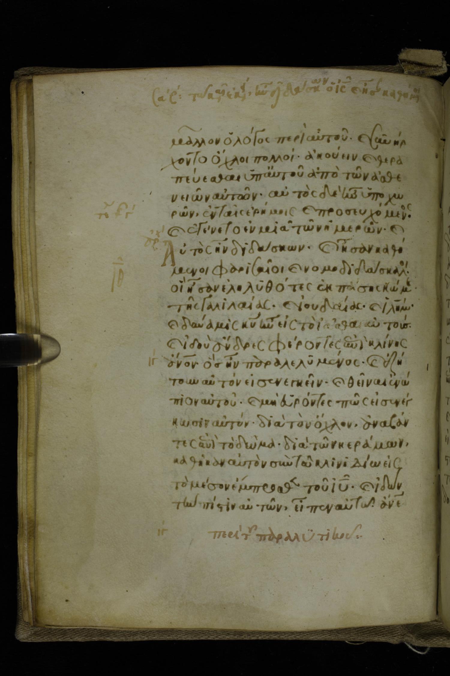 Fourteenth century minuscule of the Gospels on parchment; 302 leaves, 1 column, 19-21 lines per column. Images were taken at the National Library of Greece in Athens.