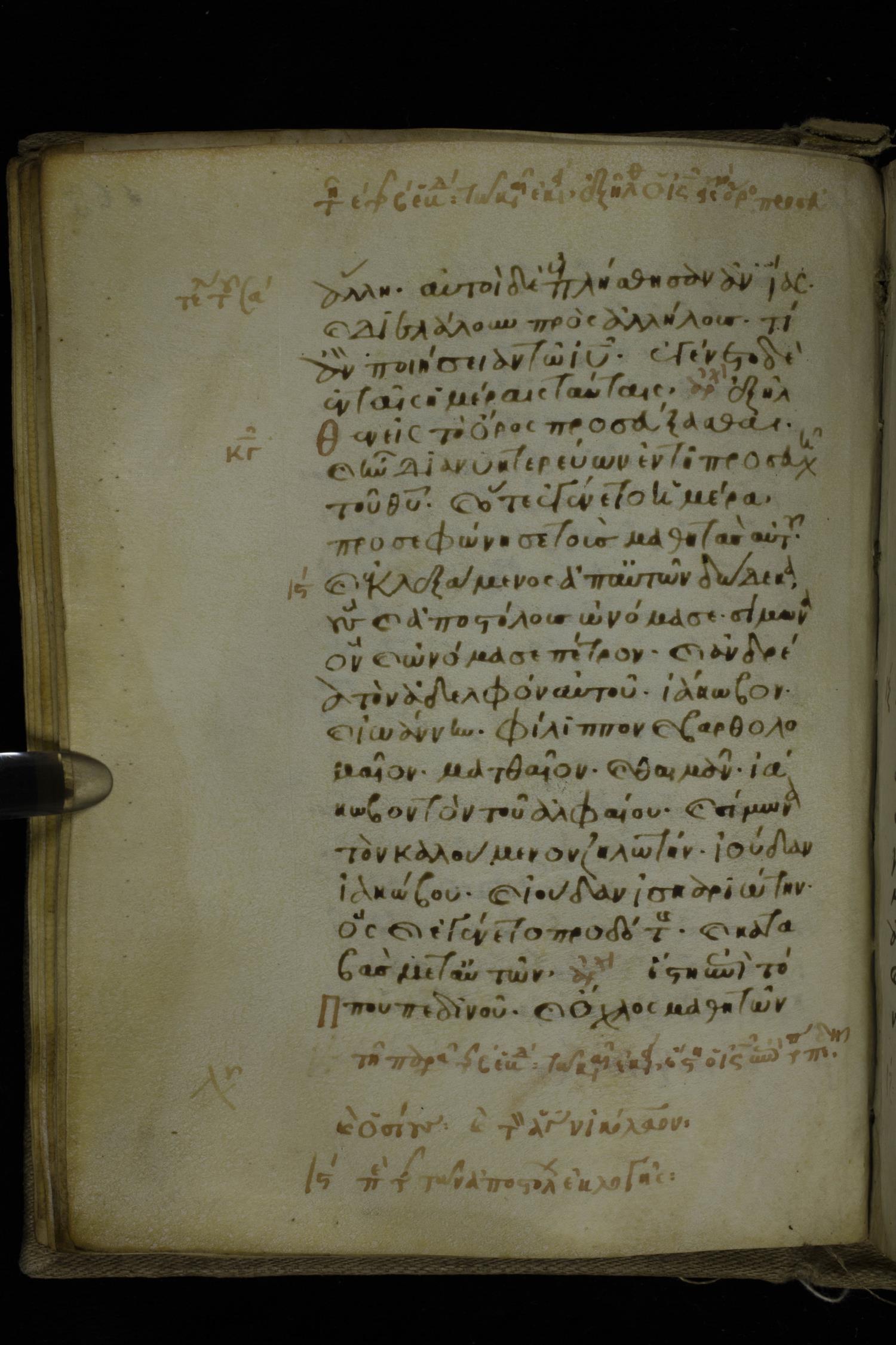 Fourteenth century minuscule of the Gospels on parchment; 302 leaves, 1 column, 19-21 lines per column. Images were taken at the National Library of Greece in Athens.