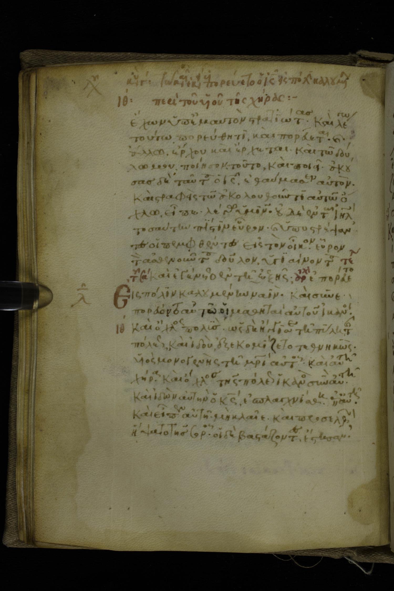 Fourteenth century minuscule of the Gospels on parchment; 302 leaves, 1 column, 19-21 lines per column. Images were taken at the National Library of Greece in Athens.