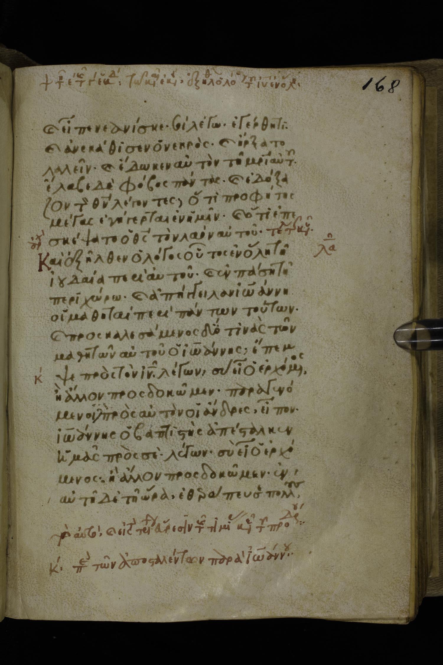 Fourteenth century minuscule of the Gospels on parchment; 302 leaves, 1 column, 19-21 lines per column. Images were taken at the National Library of Greece in Athens.