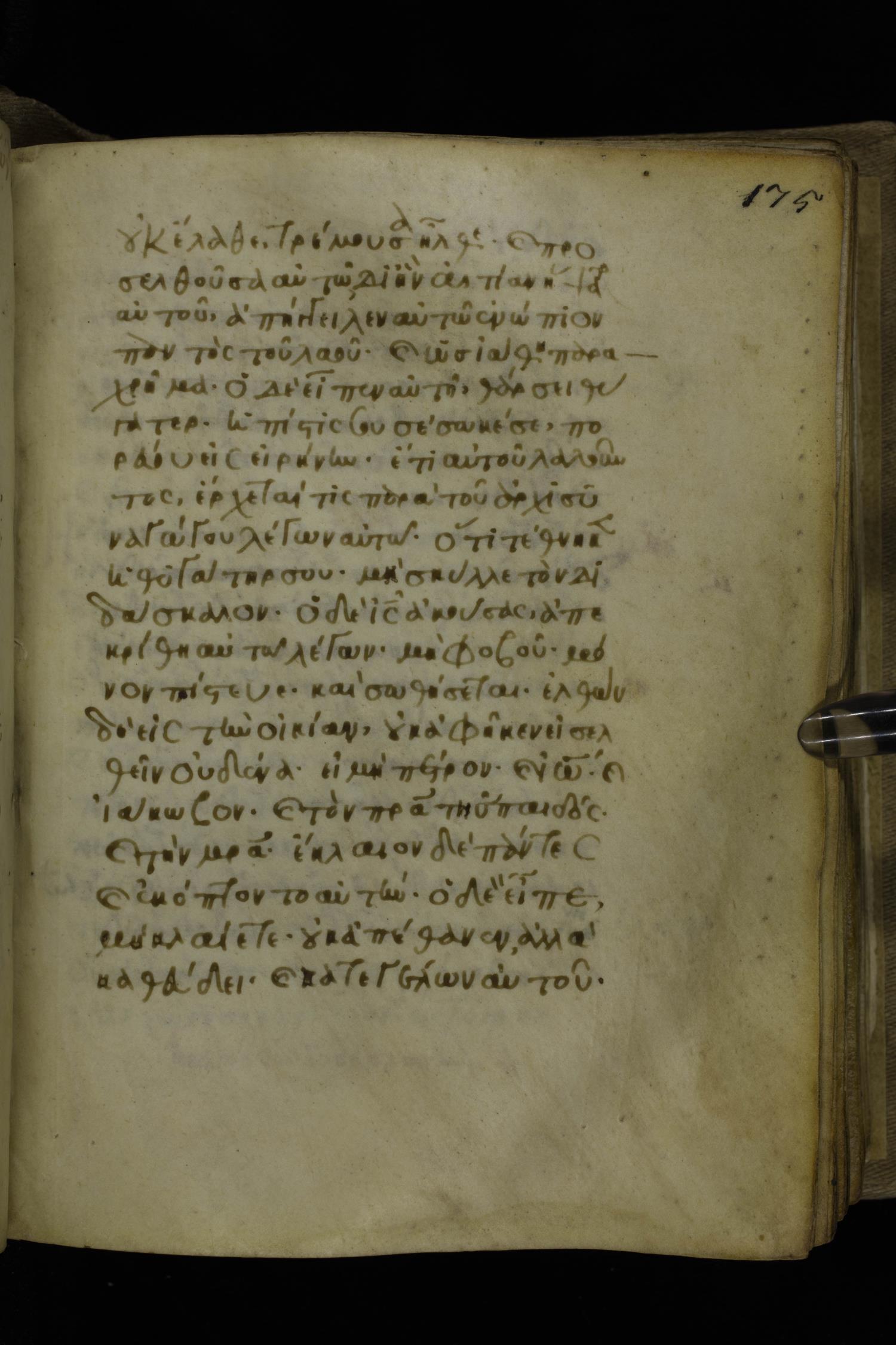 Fourteenth century minuscule of the Gospels on parchment; 302 leaves, 1 column, 19-21 lines per column. Images were taken at the National Library of Greece in Athens.