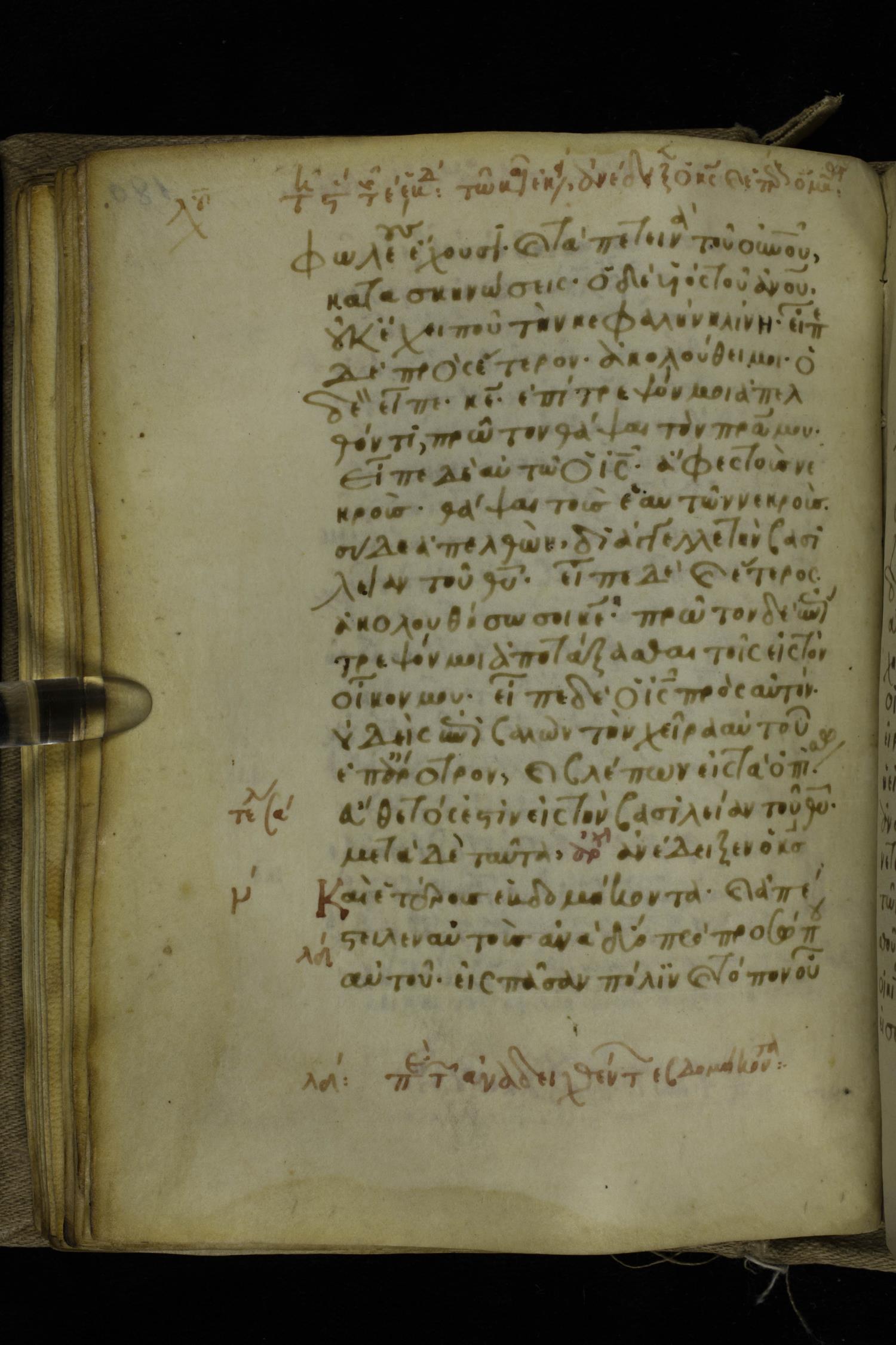 Fourteenth century minuscule of the Gospels on parchment; 302 leaves, 1 column, 19-21 lines per column. Images were taken at the National Library of Greece in Athens.