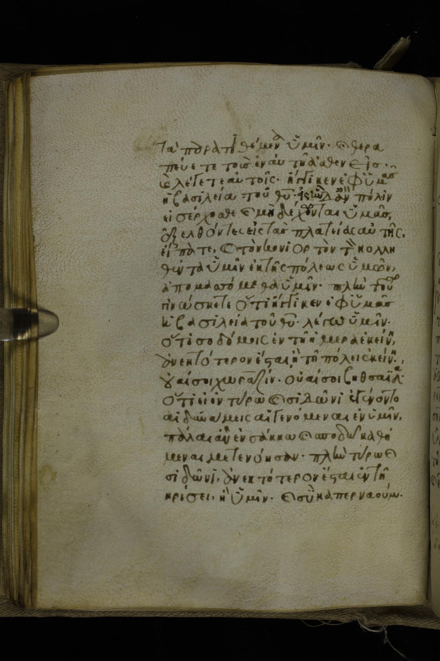 Fourteenth century minuscule of the Gospels on parchment; 302 leaves, 1 column, 19-21 lines per column. Images were taken at the National Library of Greece in Athens.