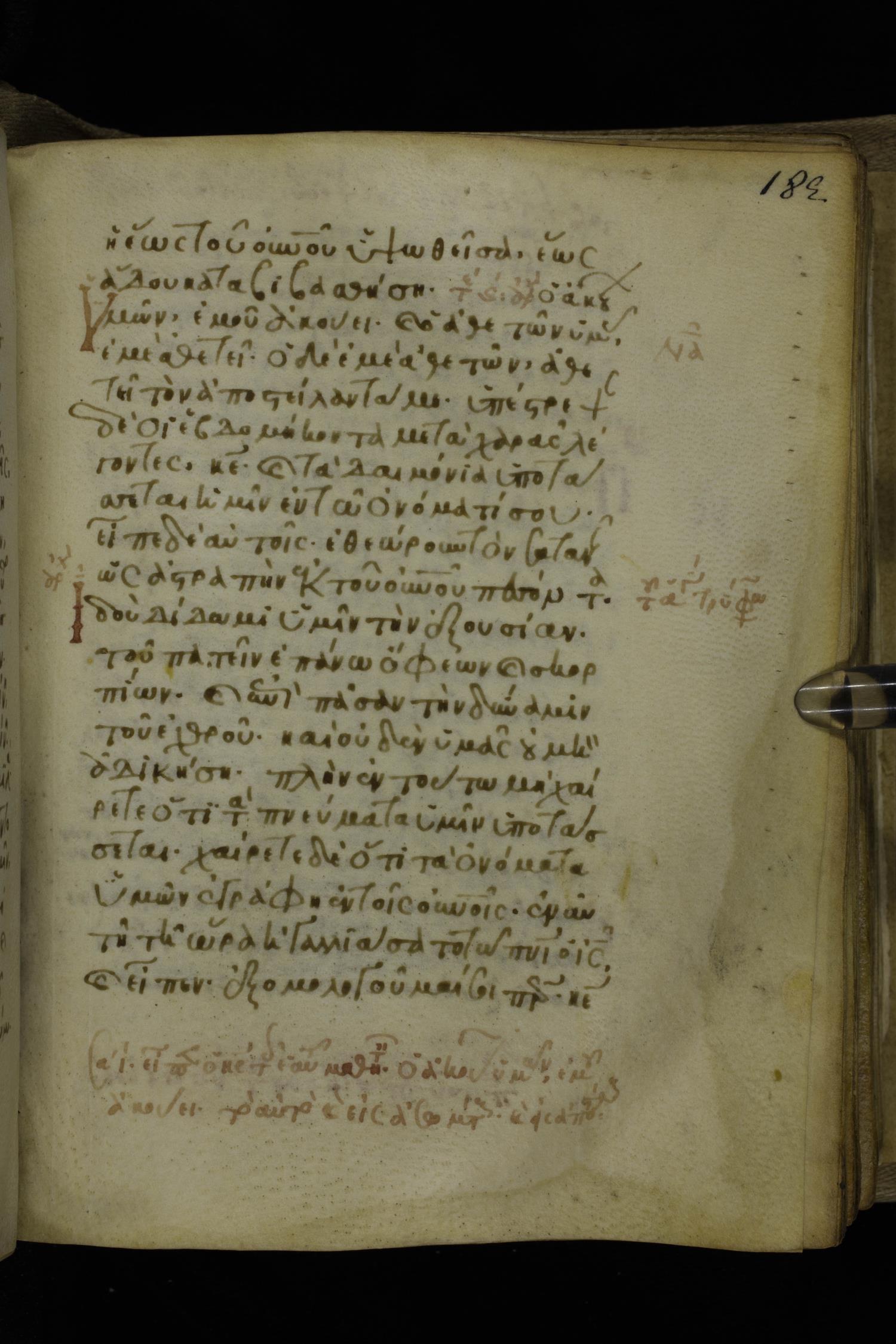 Fourteenth century minuscule of the Gospels on parchment; 302 leaves, 1 column, 19-21 lines per column. Images were taken at the National Library of Greece in Athens.