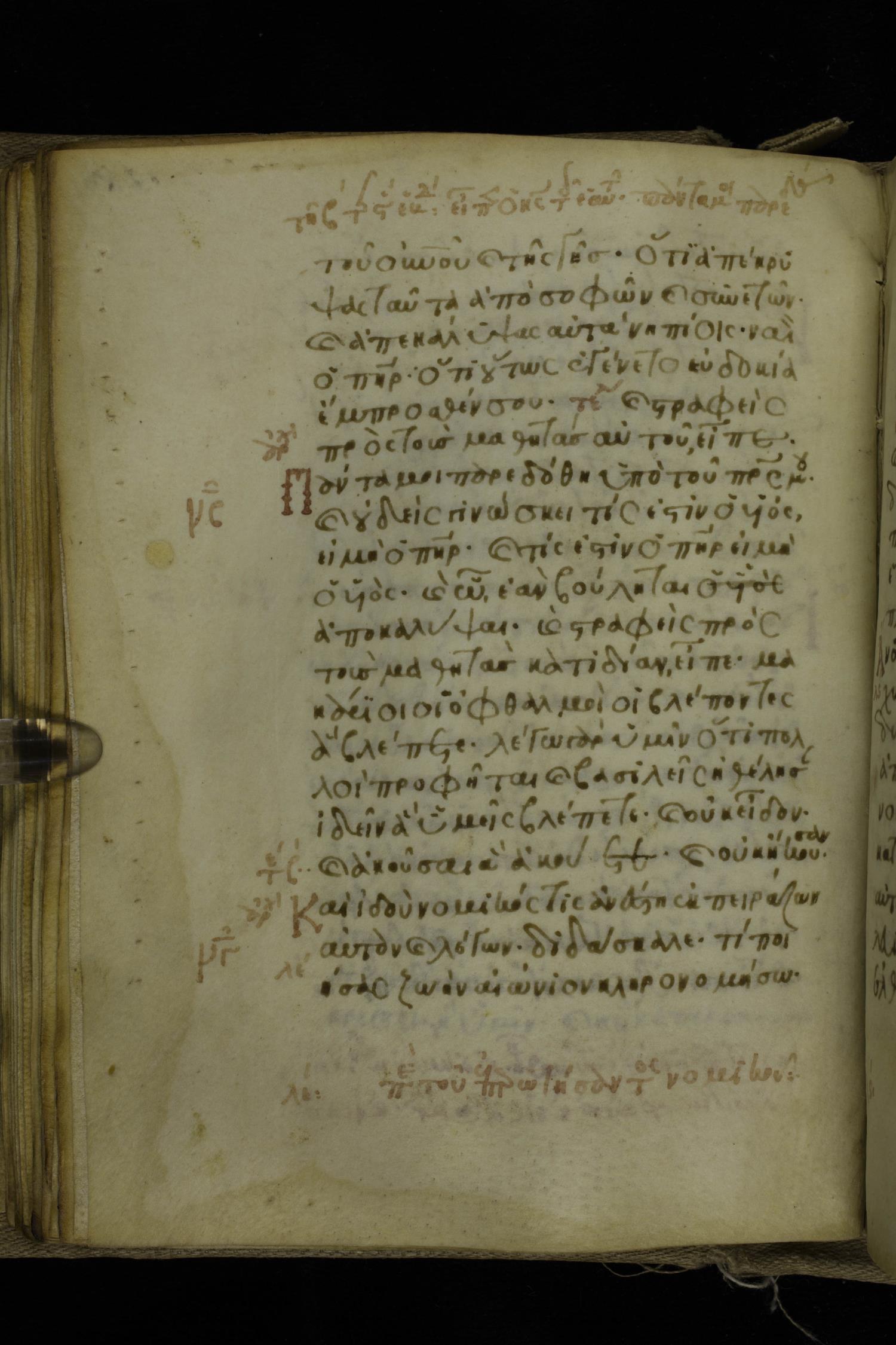 Fourteenth century minuscule of the Gospels on parchment; 302 leaves, 1 column, 19-21 lines per column. Images were taken at the National Library of Greece in Athens.