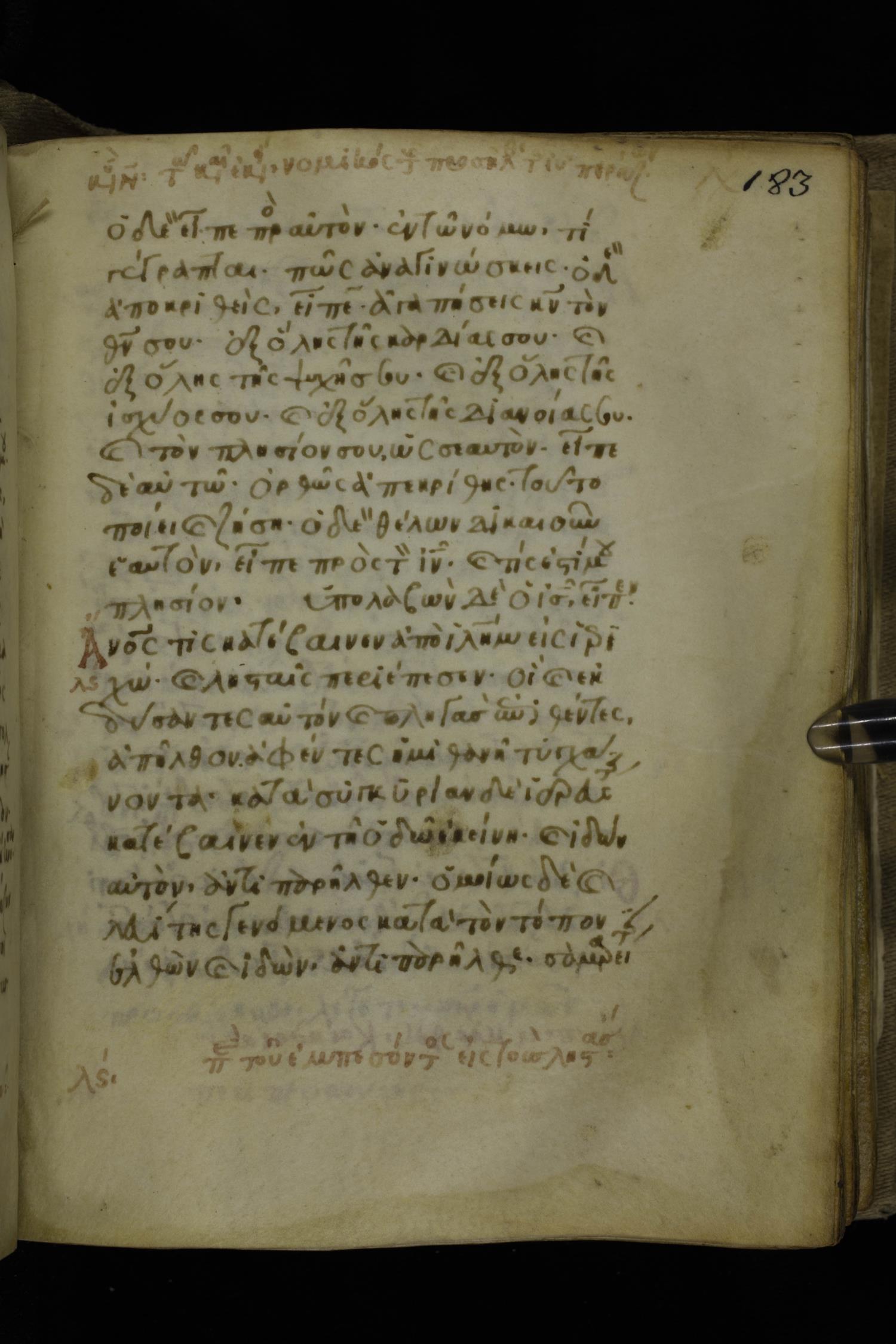 Fourteenth century minuscule of the Gospels on parchment; 302 leaves, 1 column, 19-21 lines per column. Images were taken at the National Library of Greece in Athens.
