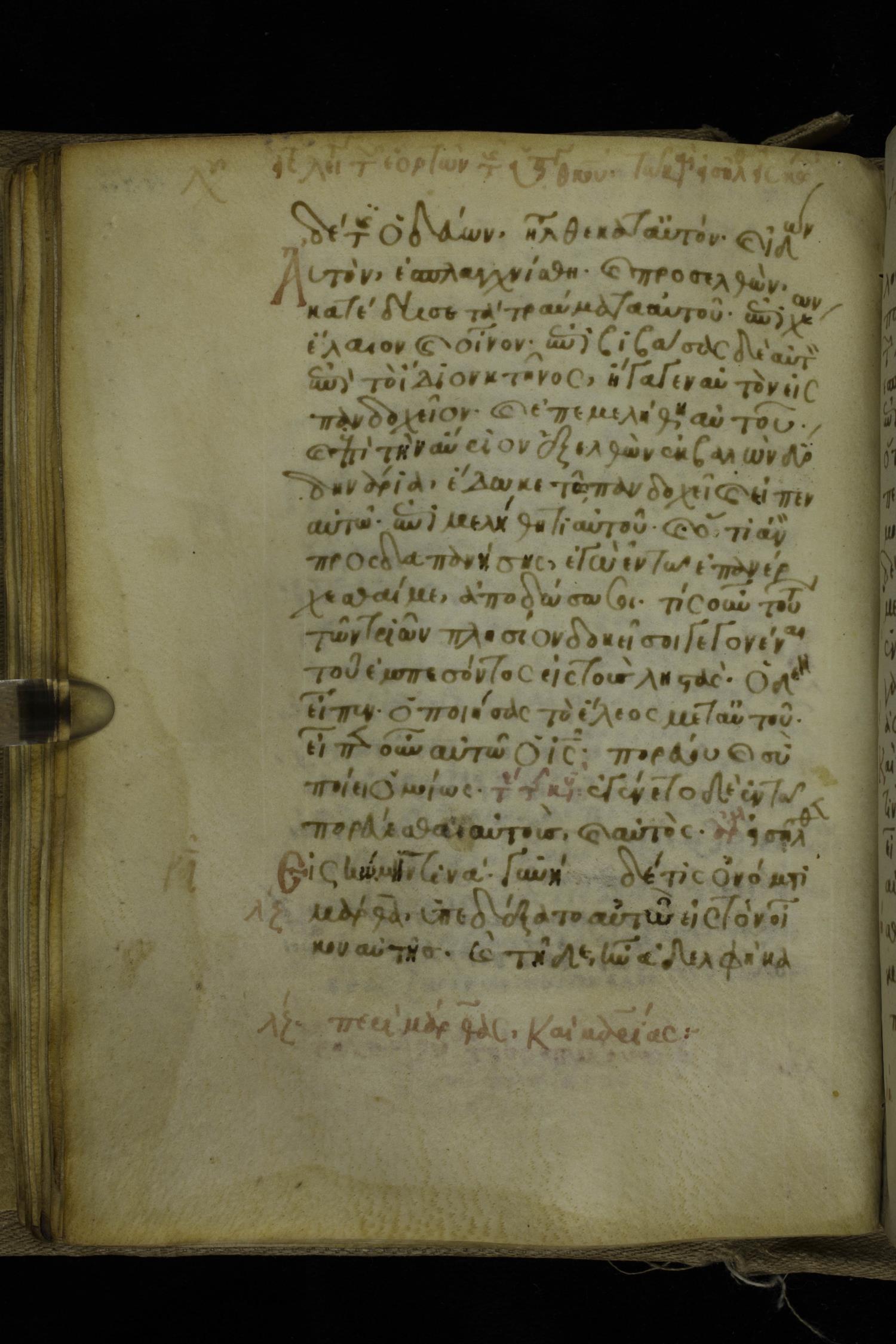 Fourteenth century minuscule of the Gospels on parchment; 302 leaves, 1 column, 19-21 lines per column. Images were taken at the National Library of Greece in Athens.