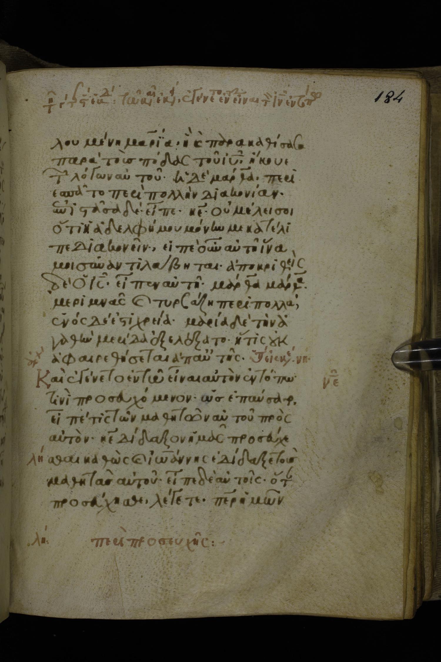 Fourteenth century minuscule of the Gospels on parchment; 302 leaves, 1 column, 19-21 lines per column. Images were taken at the National Library of Greece in Athens.