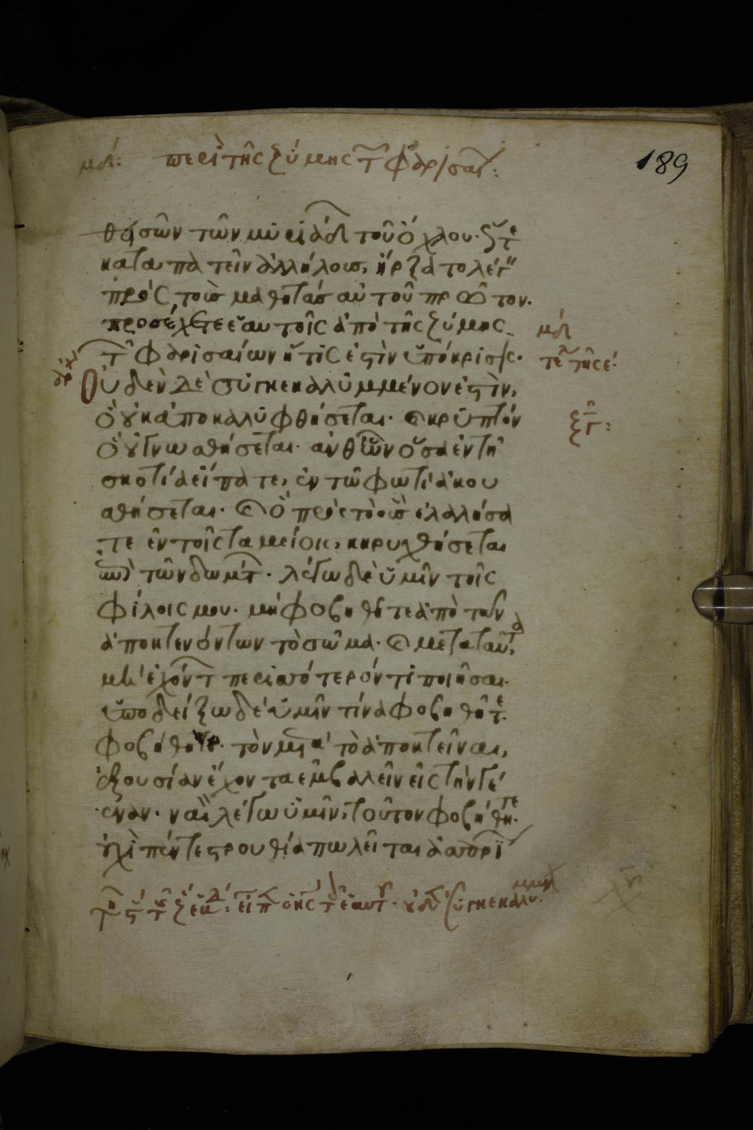 Fourteenth century minuscule of the Gospels on parchment; 302 leaves, 1 column, 19-21 lines per column. Images were taken at the National Library of Greece in Athens.