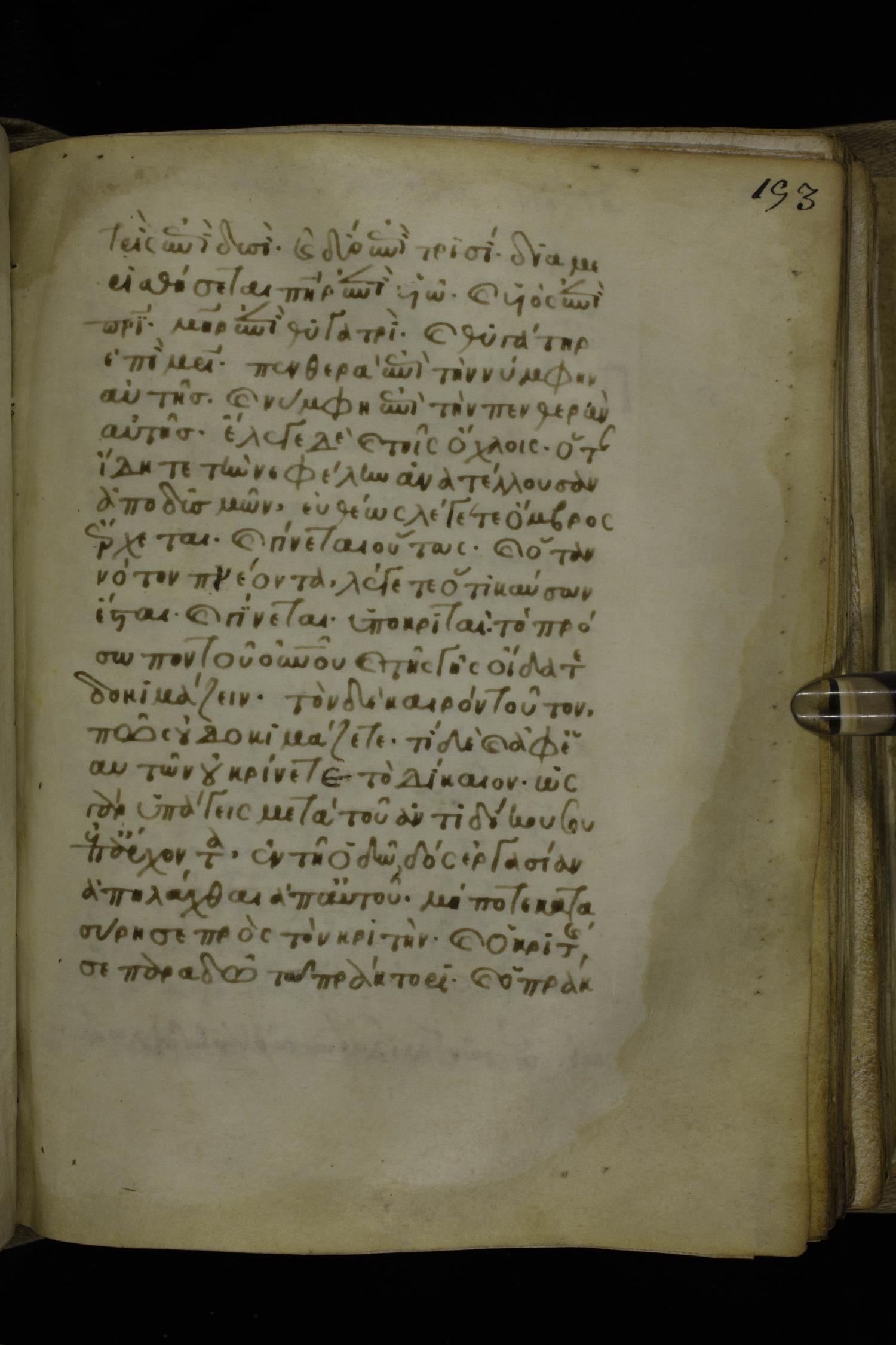 Fourteenth century minuscule of the Gospels on parchment; 302 leaves, 1 column, 19-21 lines per column. Images were taken at the National Library of Greece in Athens.