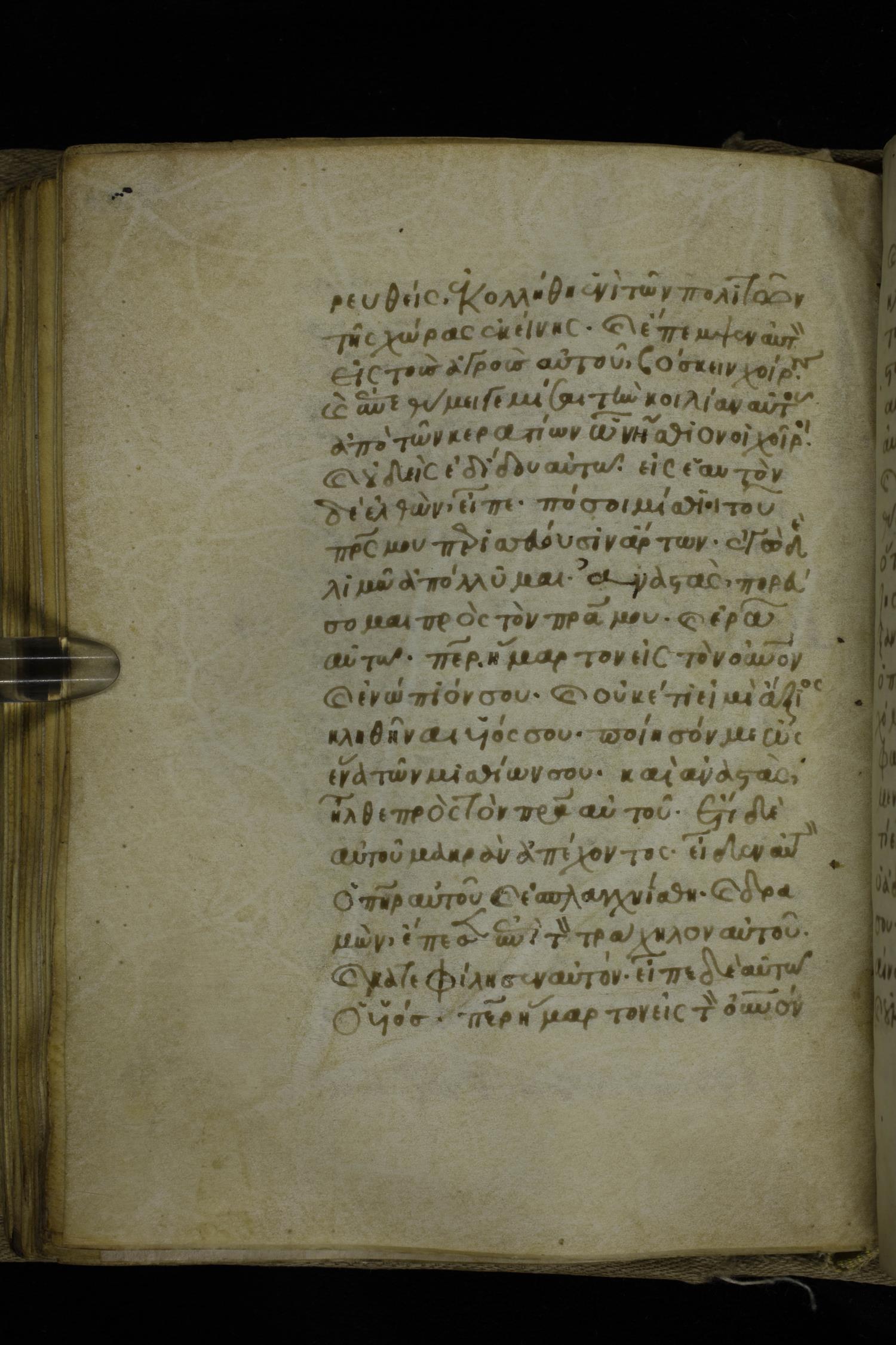 Fourteenth century minuscule of the Gospels on parchment; 302 leaves, 1 column, 19-21 lines per column. Images were taken at the National Library of Greece in Athens.
