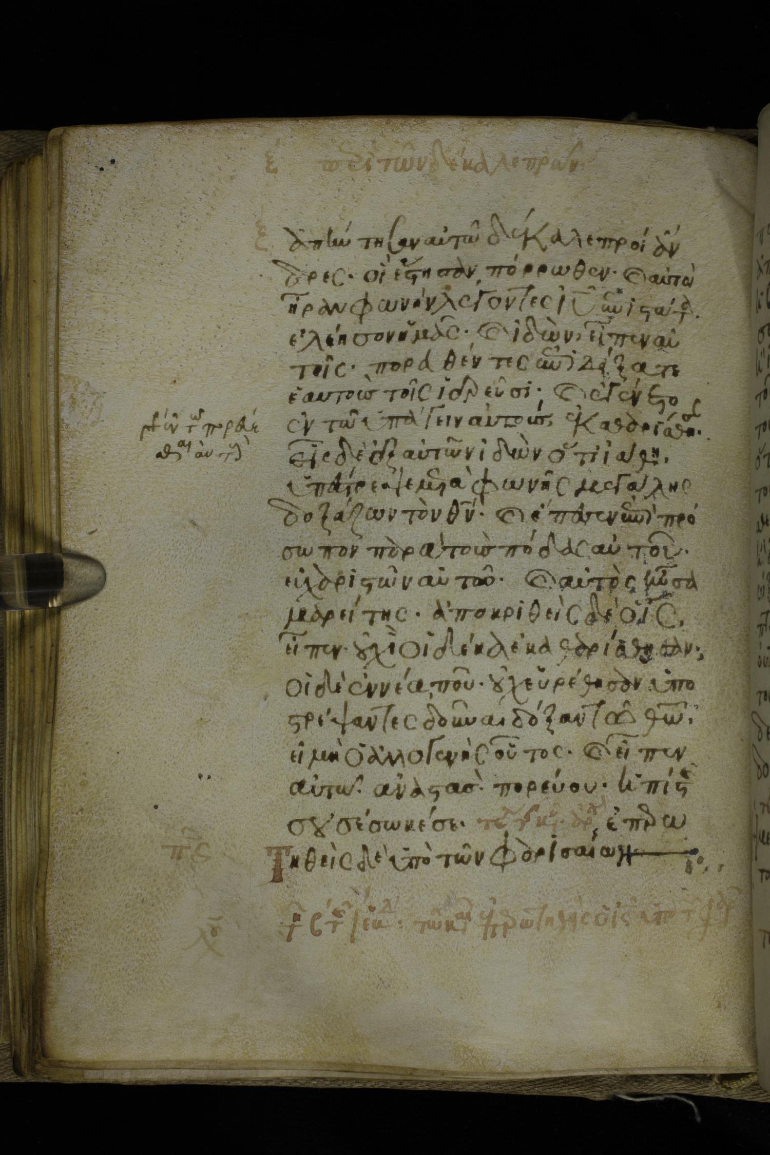 Fourteenth century minuscule of the Gospels on parchment; 302 leaves, 1 column, 19-21 lines per column. Images were taken at the National Library of Greece in Athens.