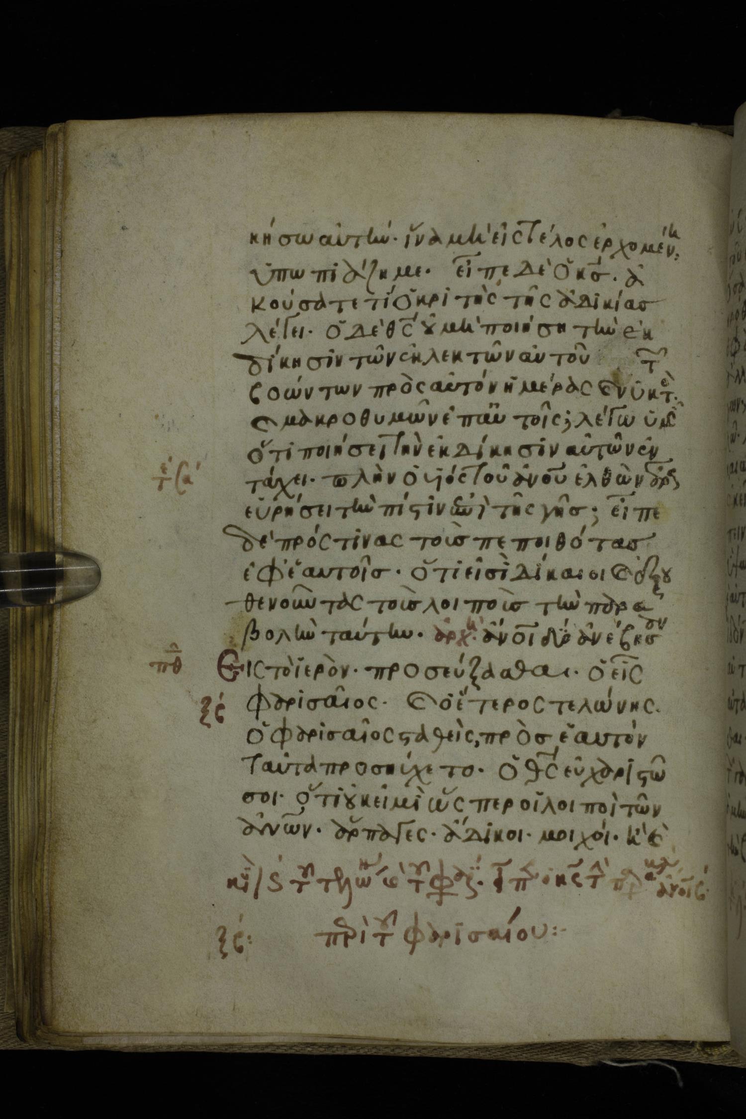 Fourteenth century minuscule of the Gospels on parchment; 302 leaves, 1 column, 19-21 lines per column. Images were taken at the National Library of Greece in Athens.