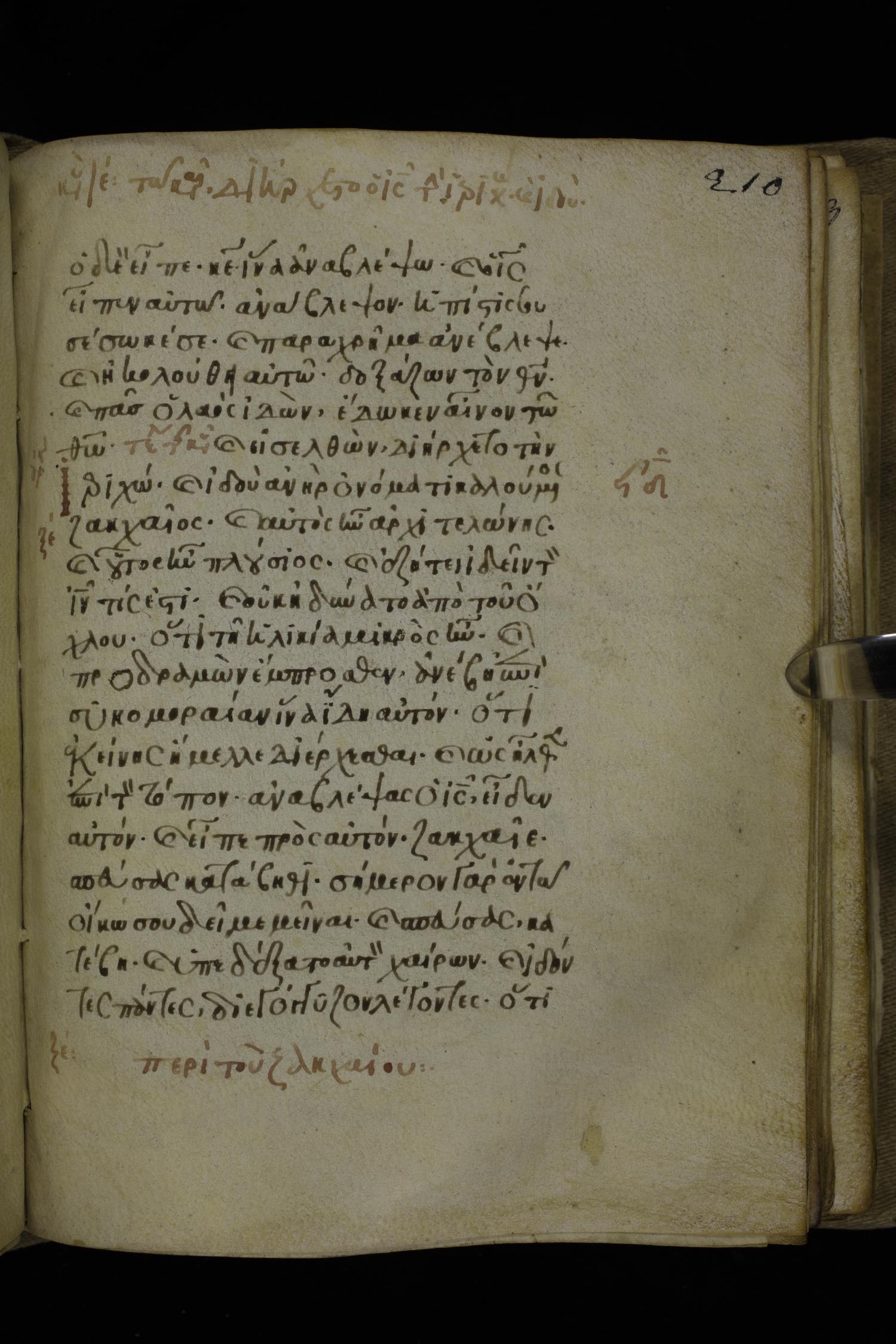 Fourteenth century minuscule of the Gospels on parchment; 302 leaves, 1 column, 19-21 lines per column. Images were taken at the National Library of Greece in Athens.