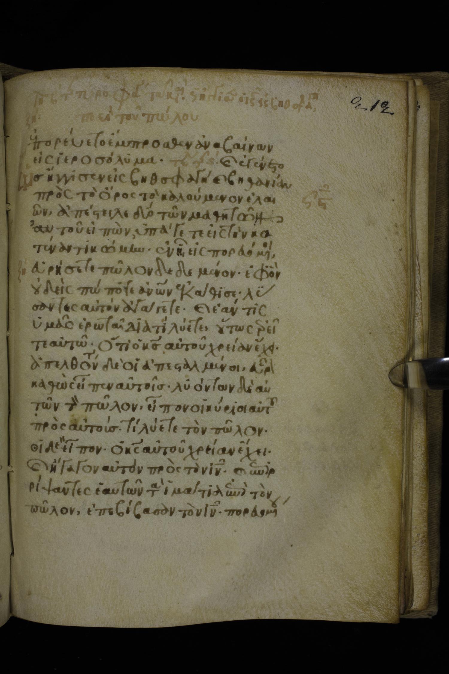 Fourteenth century minuscule of the Gospels on parchment; 302 leaves, 1 column, 19-21 lines per column. Images were taken at the National Library of Greece in Athens.