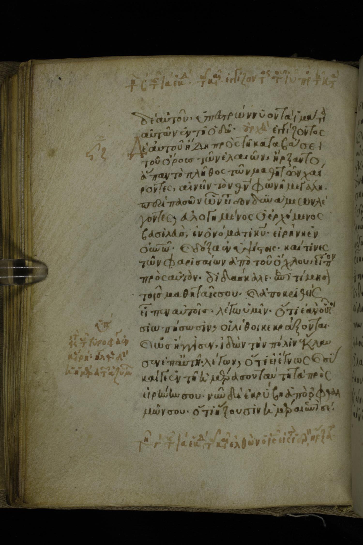 Fourteenth century minuscule of the Gospels on parchment; 302 leaves, 1 column, 19-21 lines per column. Images were taken at the National Library of Greece in Athens.