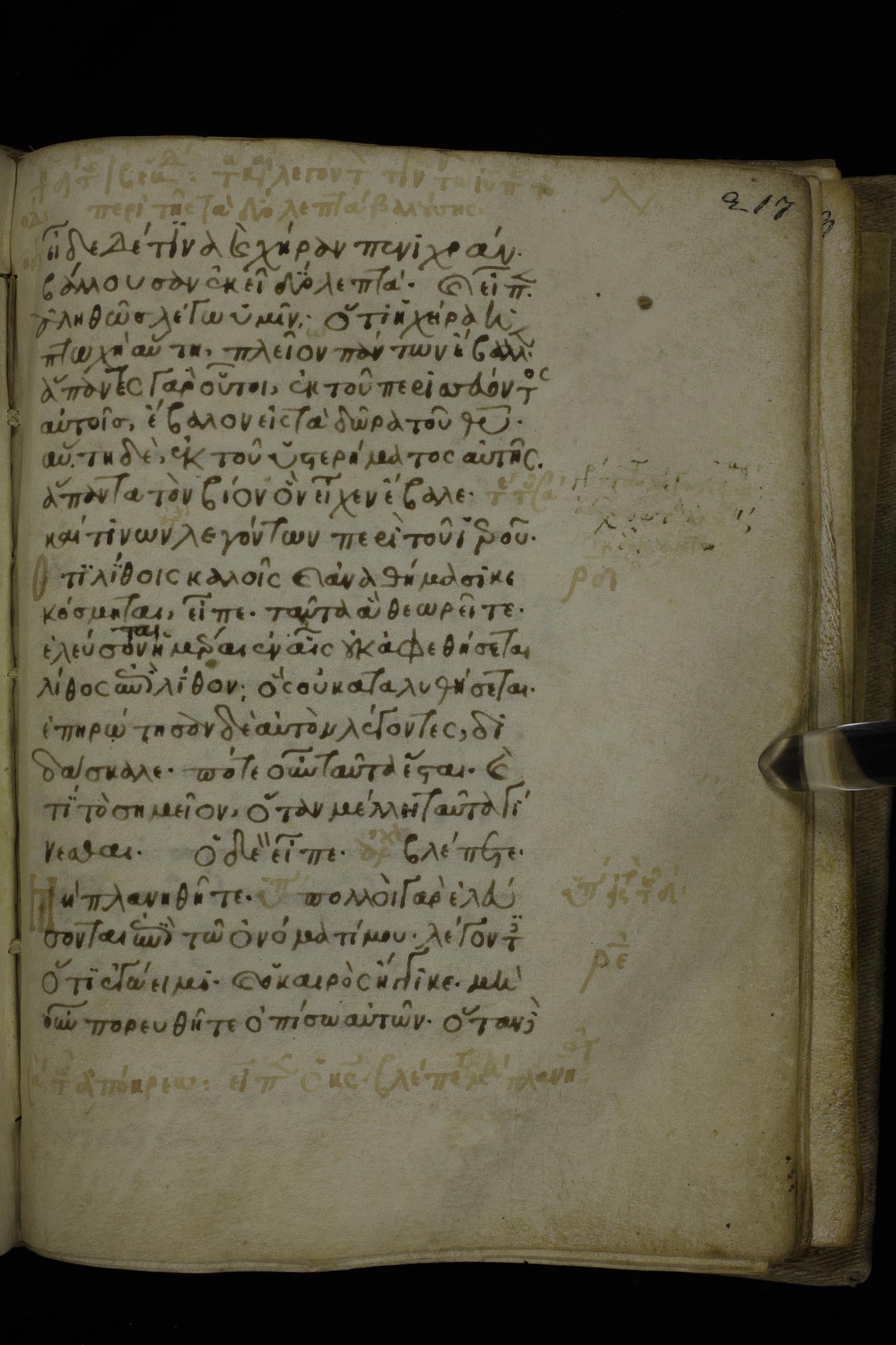 Fourteenth century minuscule of the Gospels on parchment; 302 leaves, 1 column, 19-21 lines per column. Images were taken at the National Library of Greece in Athens.