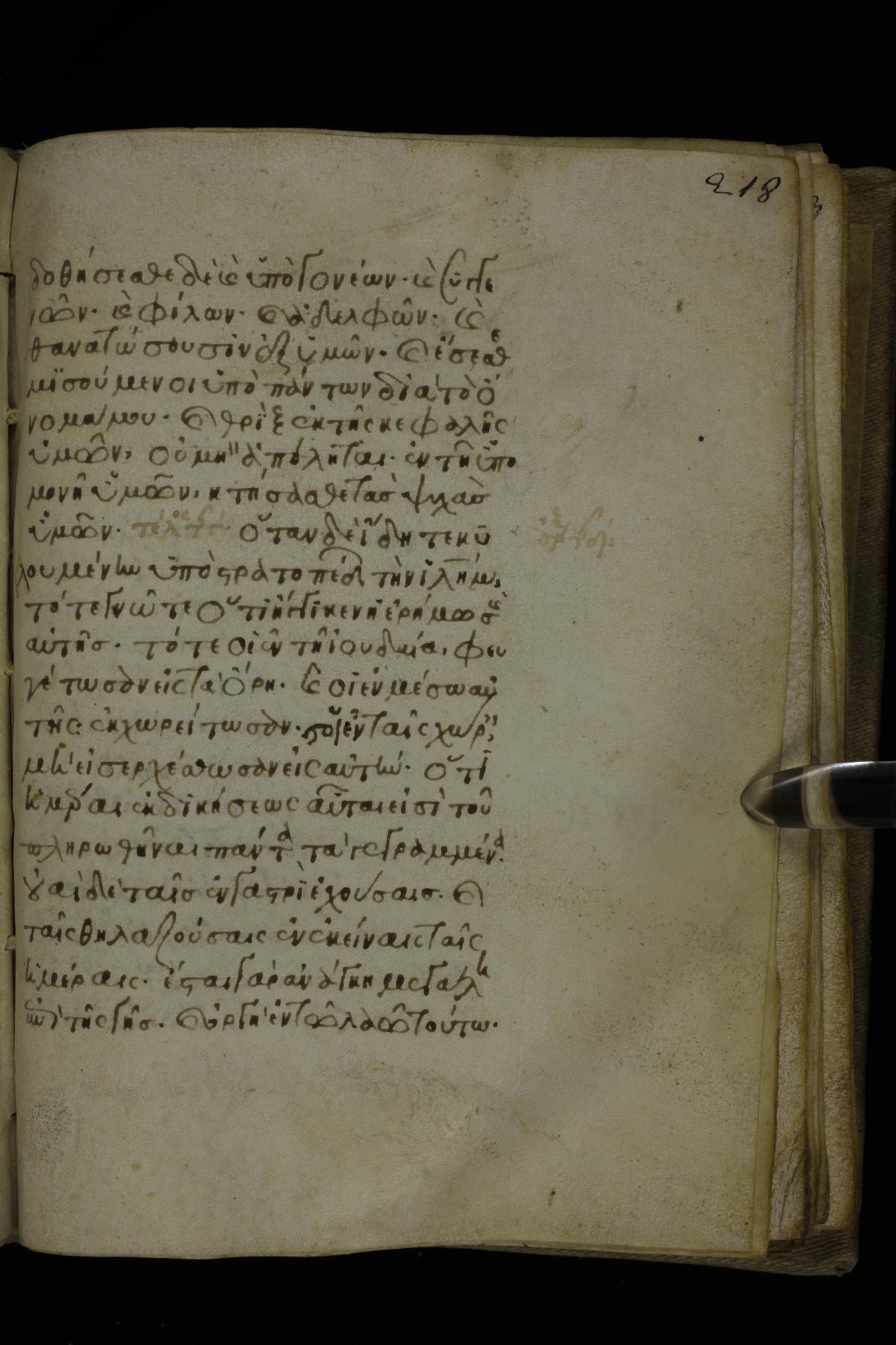 Fourteenth century minuscule of the Gospels on parchment; 302 leaves, 1 column, 19-21 lines per column. Images were taken at the National Library of Greece in Athens.