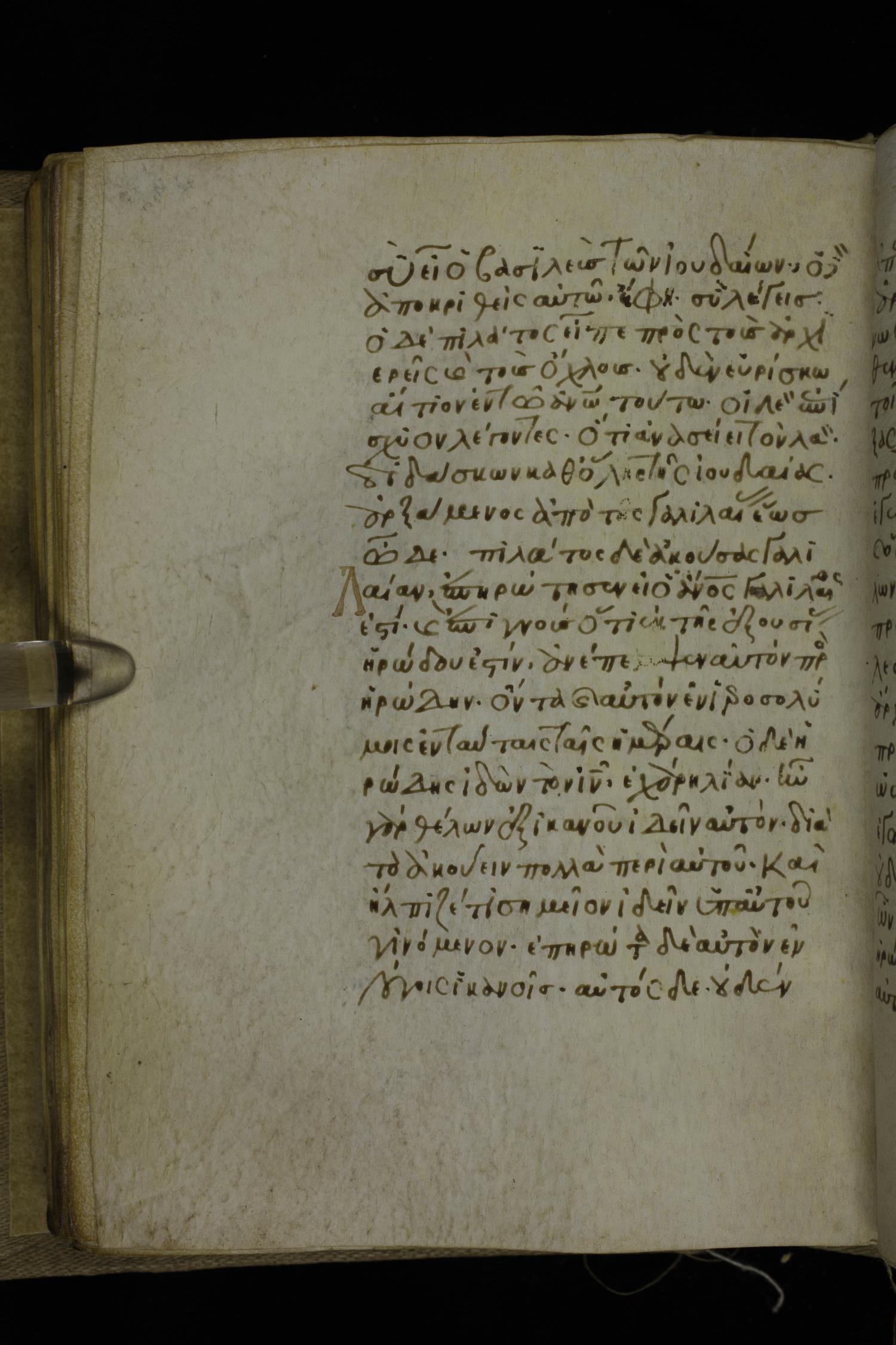 Fourteenth century minuscule of the Gospels on parchment; 302 leaves, 1 column, 19-21 lines per column. Images were taken at the National Library of Greece in Athens.