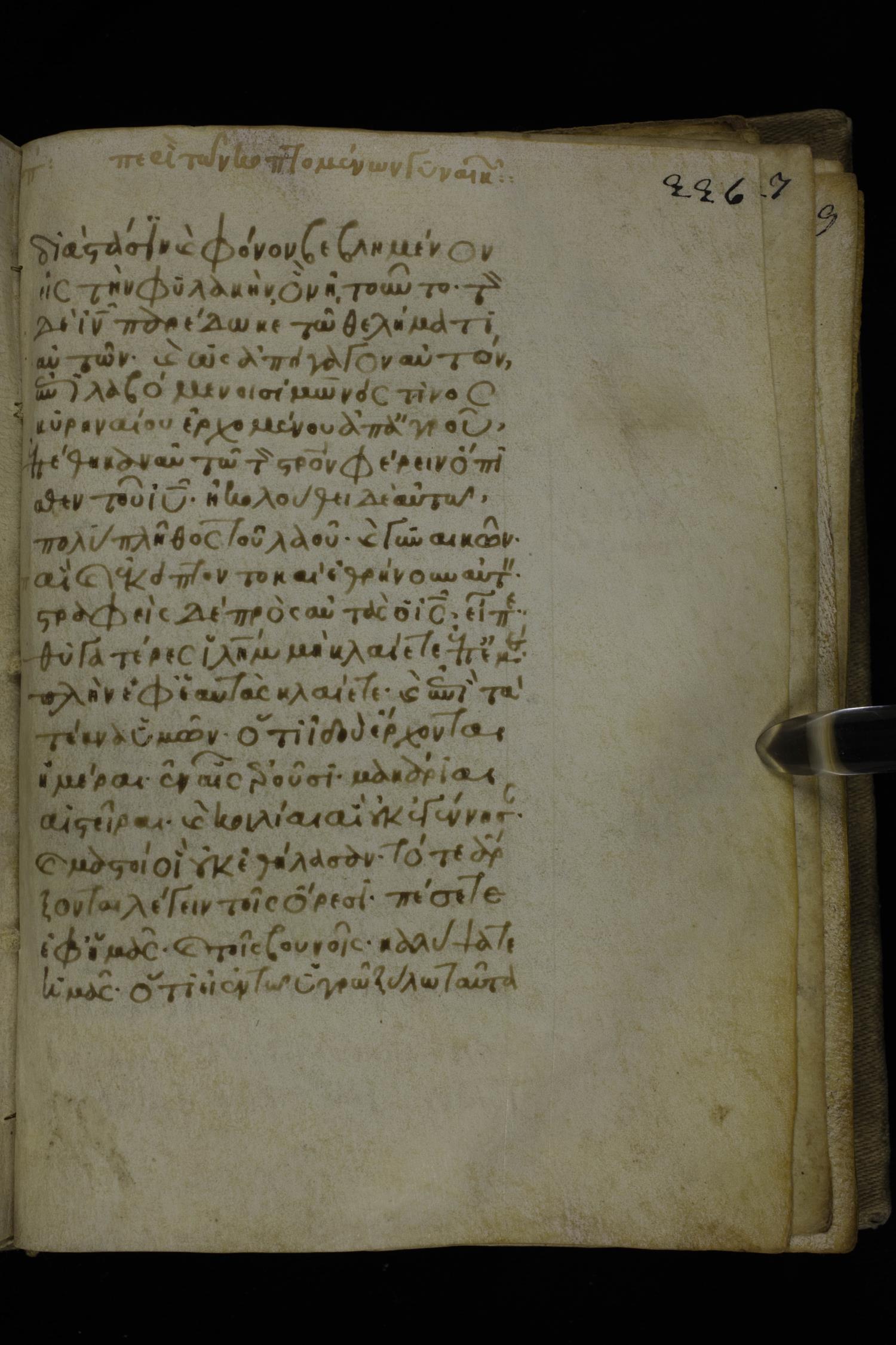 Fourteenth century minuscule of the Gospels on parchment; 302 leaves, 1 column, 19-21 lines per column. Images were taken at the National Library of Greece in Athens.