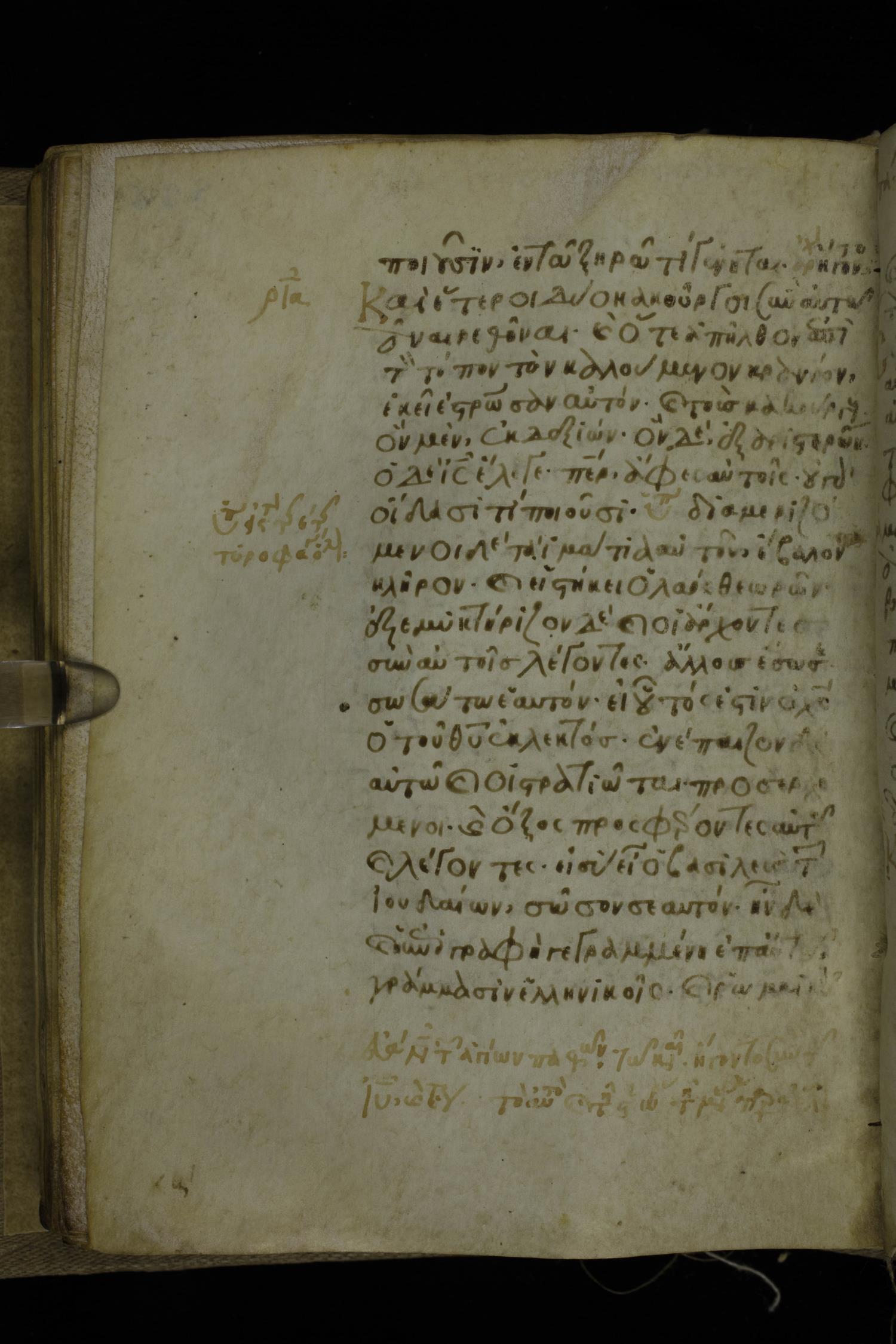 Fourteenth century minuscule of the Gospels on parchment; 302 leaves, 1 column, 19-21 lines per column. Images were taken at the National Library of Greece in Athens.
