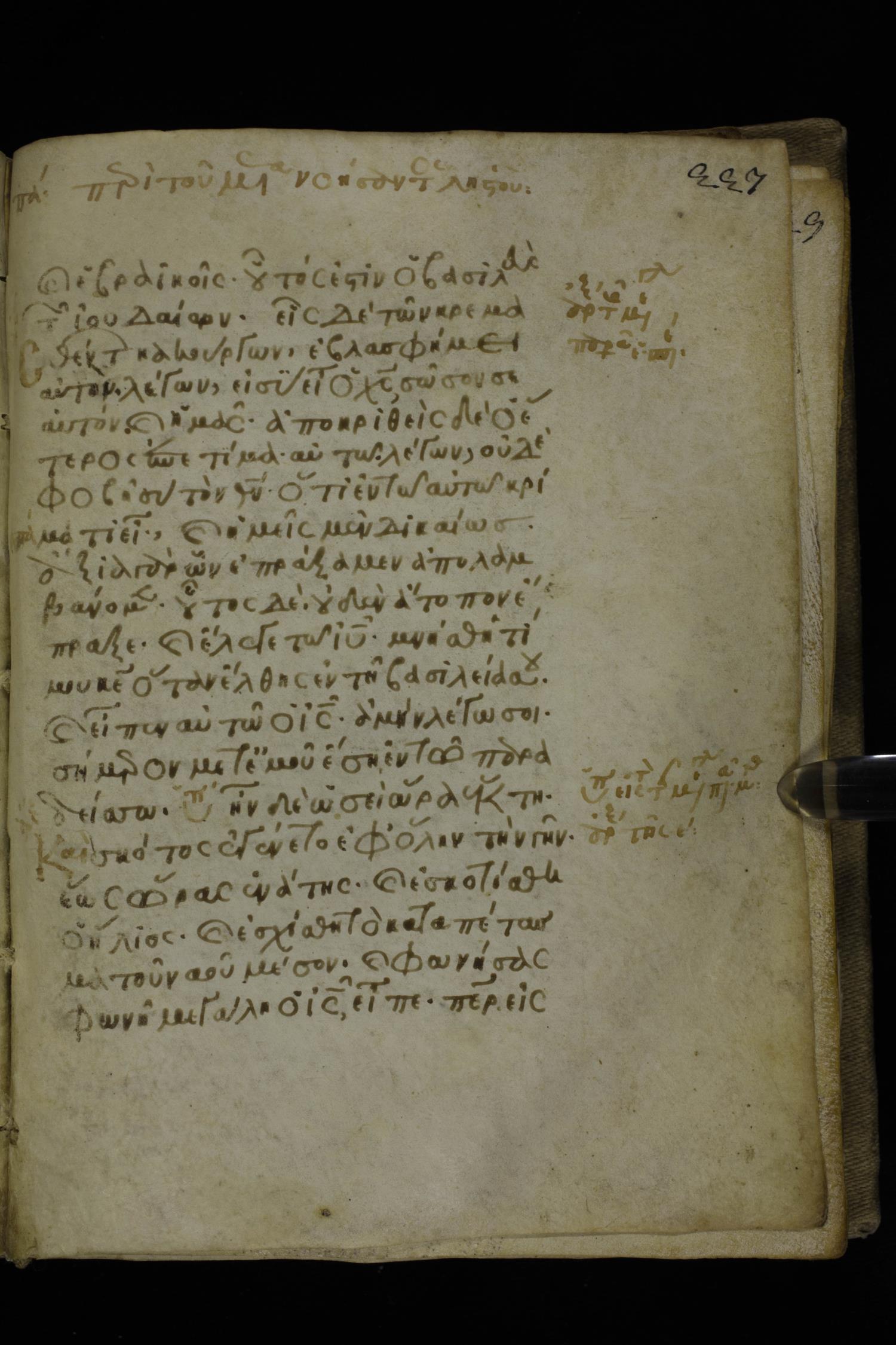 Fourteenth century minuscule of the Gospels on parchment; 302 leaves, 1 column, 19-21 lines per column. Images were taken at the National Library of Greece in Athens.