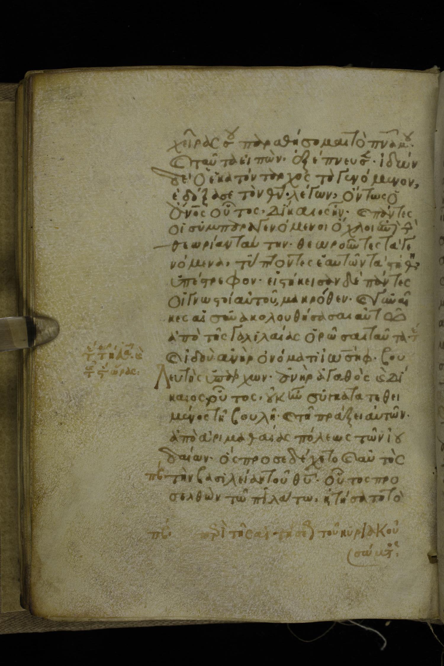 Fourteenth century minuscule of the Gospels on parchment; 302 leaves, 1 column, 19-21 lines per column. Images were taken at the National Library of Greece in Athens.