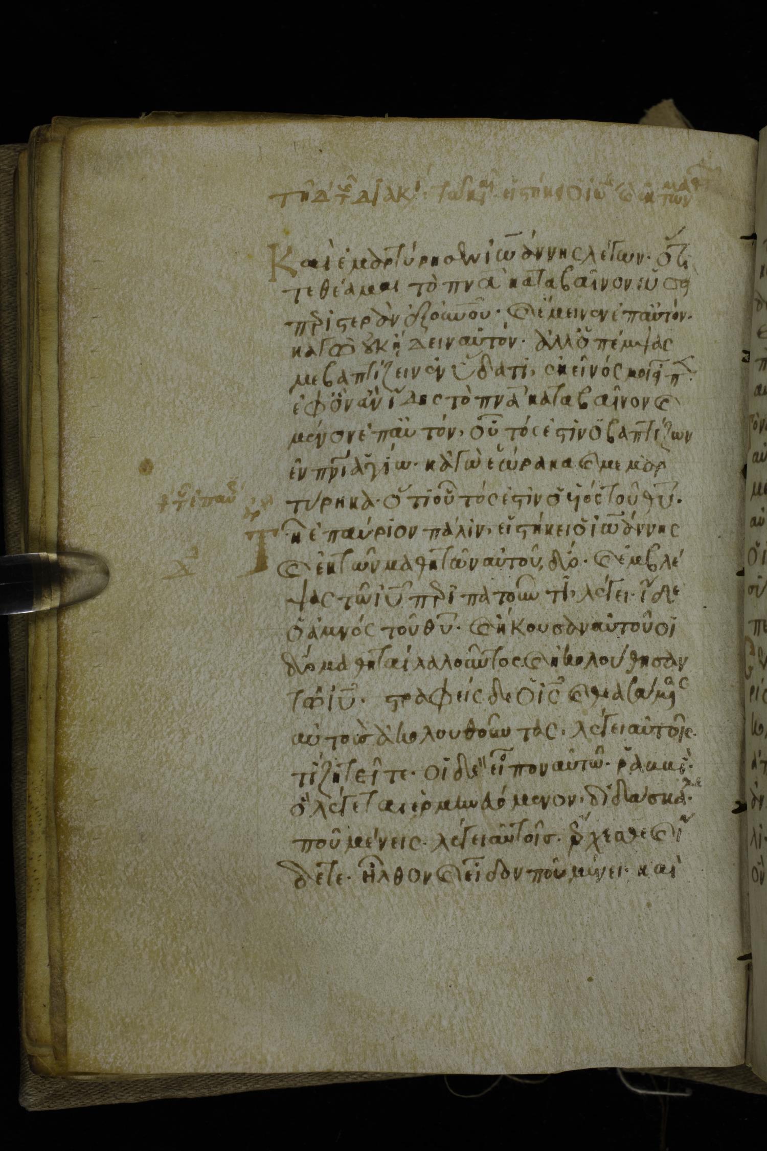 Fourteenth century minuscule of the Gospels on parchment; 302 leaves, 1 column, 19-21 lines per column. Images were taken at the National Library of Greece in Athens.