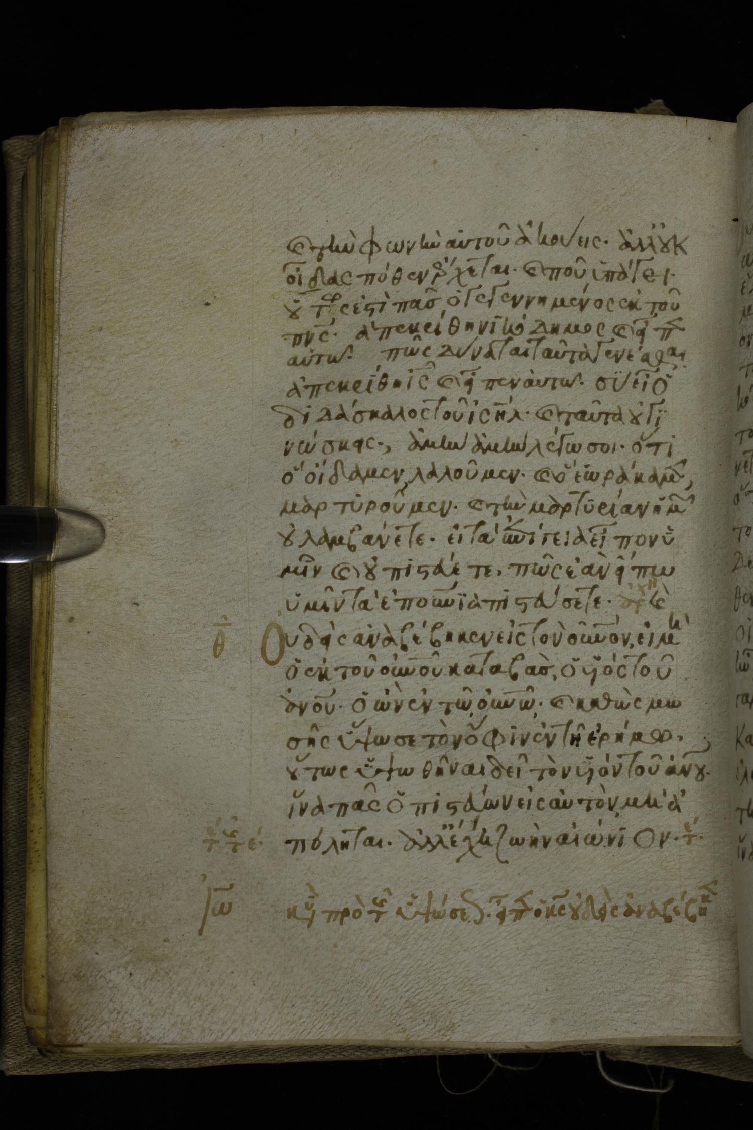 Fourteenth century minuscule of the Gospels on parchment; 302 leaves, 1 column, 19-21 lines per column. Images were taken at the National Library of Greece in Athens.