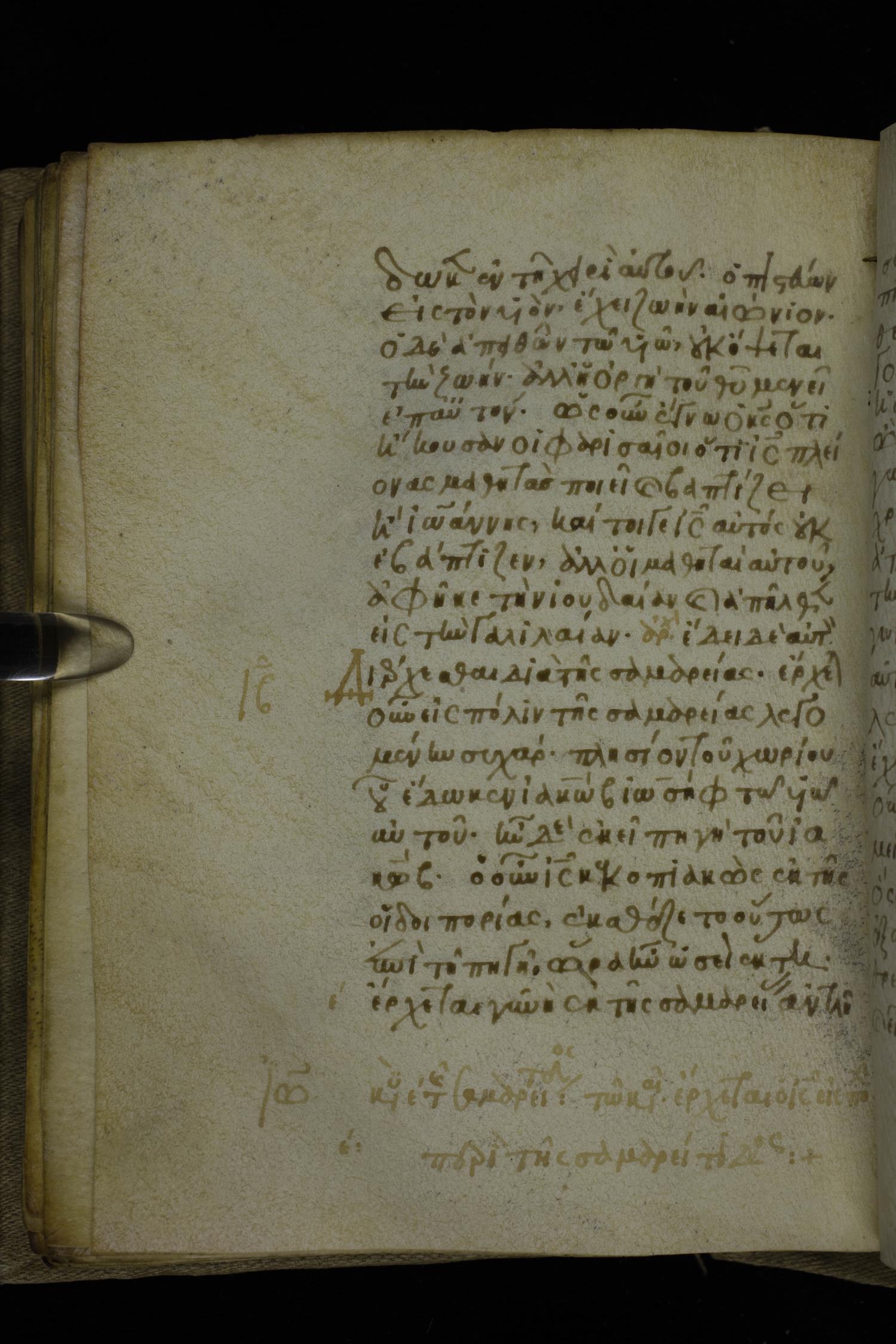 Fourteenth century minuscule of the Gospels on parchment; 302 leaves, 1 column, 19-21 lines per column. Images were taken at the National Library of Greece in Athens.