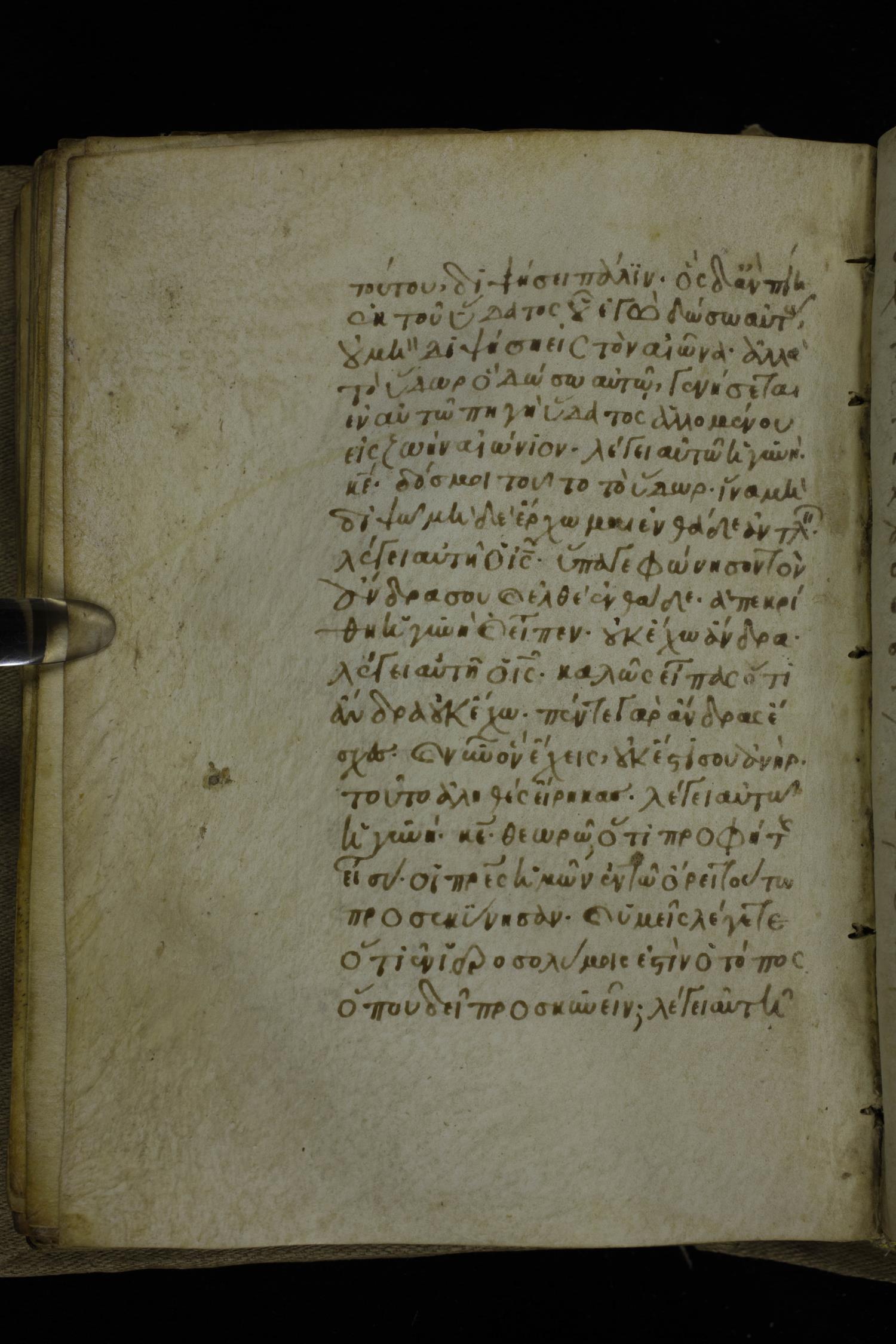 Fourteenth century minuscule of the Gospels on parchment; 302 leaves, 1 column, 19-21 lines per column. Images were taken at the National Library of Greece in Athens.