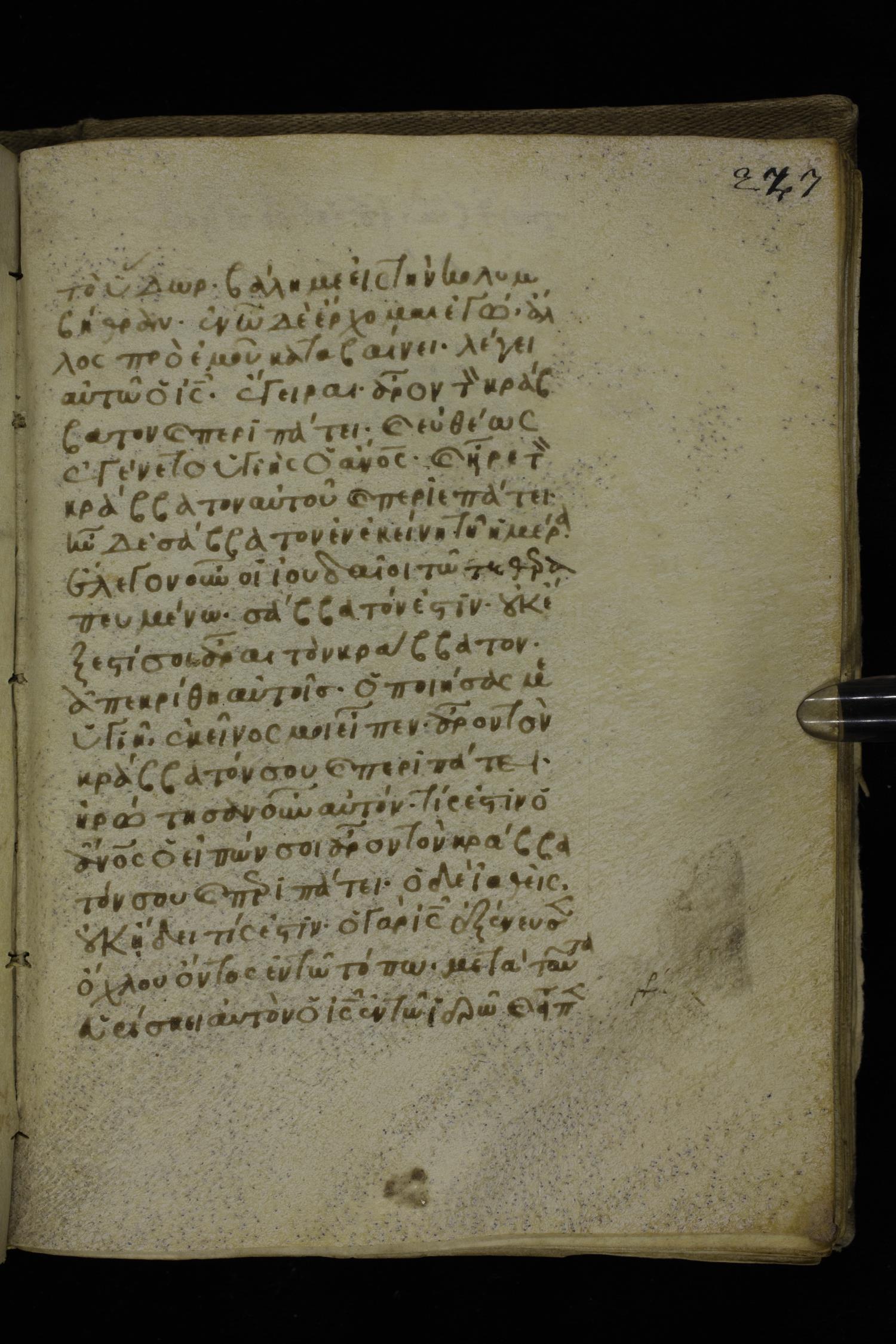Fourteenth century minuscule of the Gospels on parchment; 302 leaves, 1 column, 19-21 lines per column. Images were taken at the National Library of Greece in Athens.