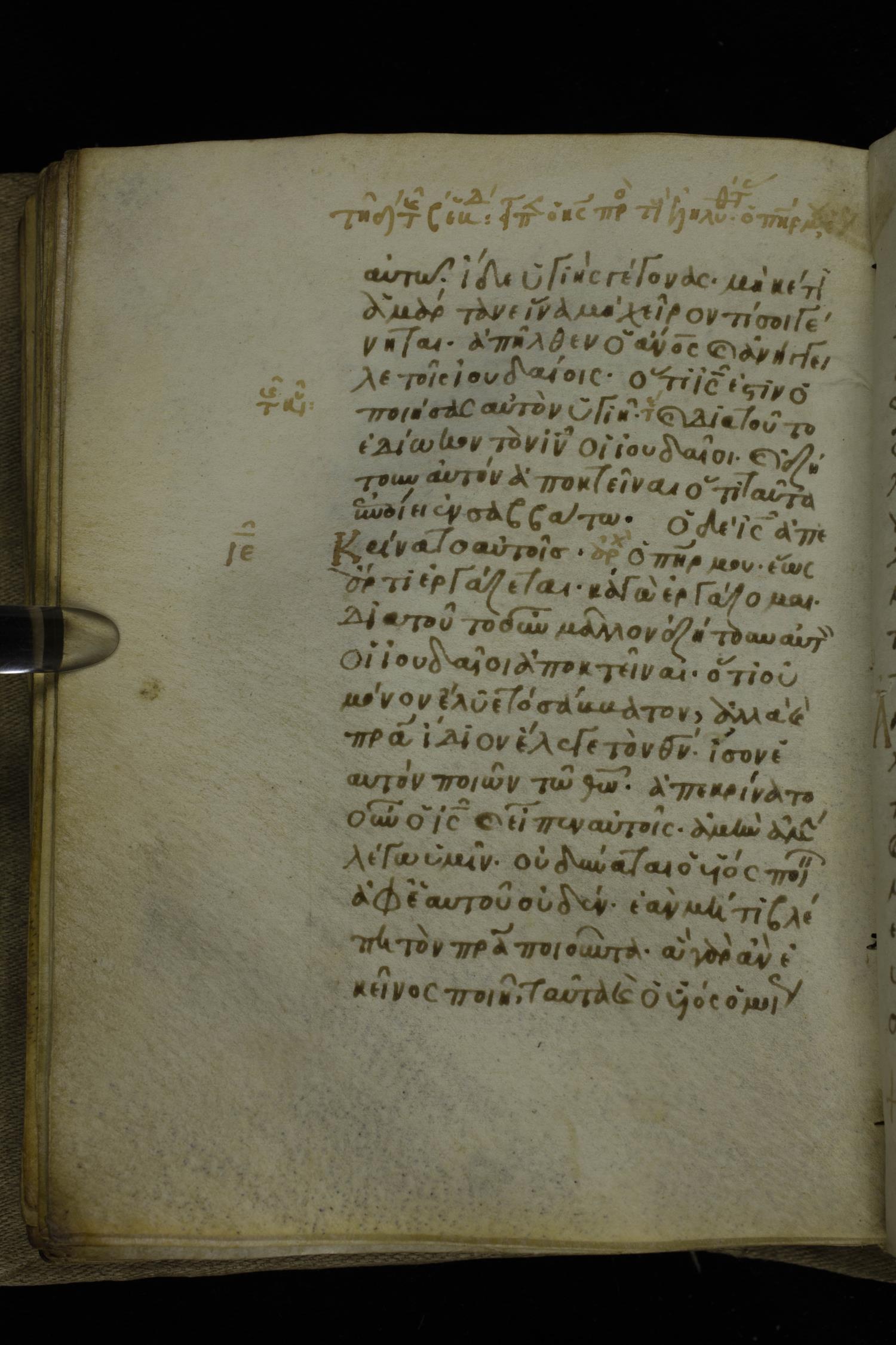 Fourteenth century minuscule of the Gospels on parchment; 302 leaves, 1 column, 19-21 lines per column. Images were taken at the National Library of Greece in Athens.