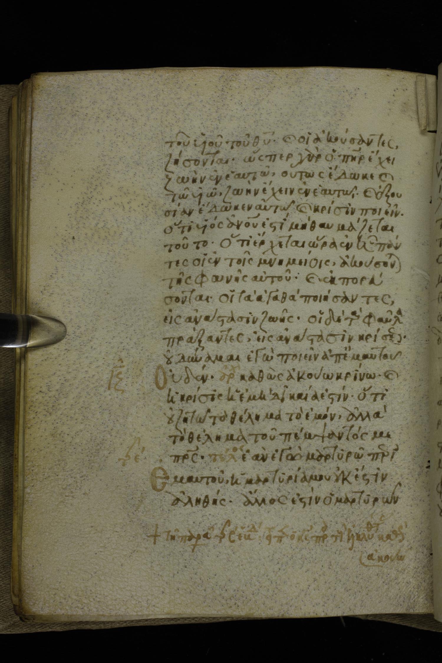 Fourteenth century minuscule of the Gospels on parchment; 302 leaves, 1 column, 19-21 lines per column. Images were taken at the National Library of Greece in Athens.