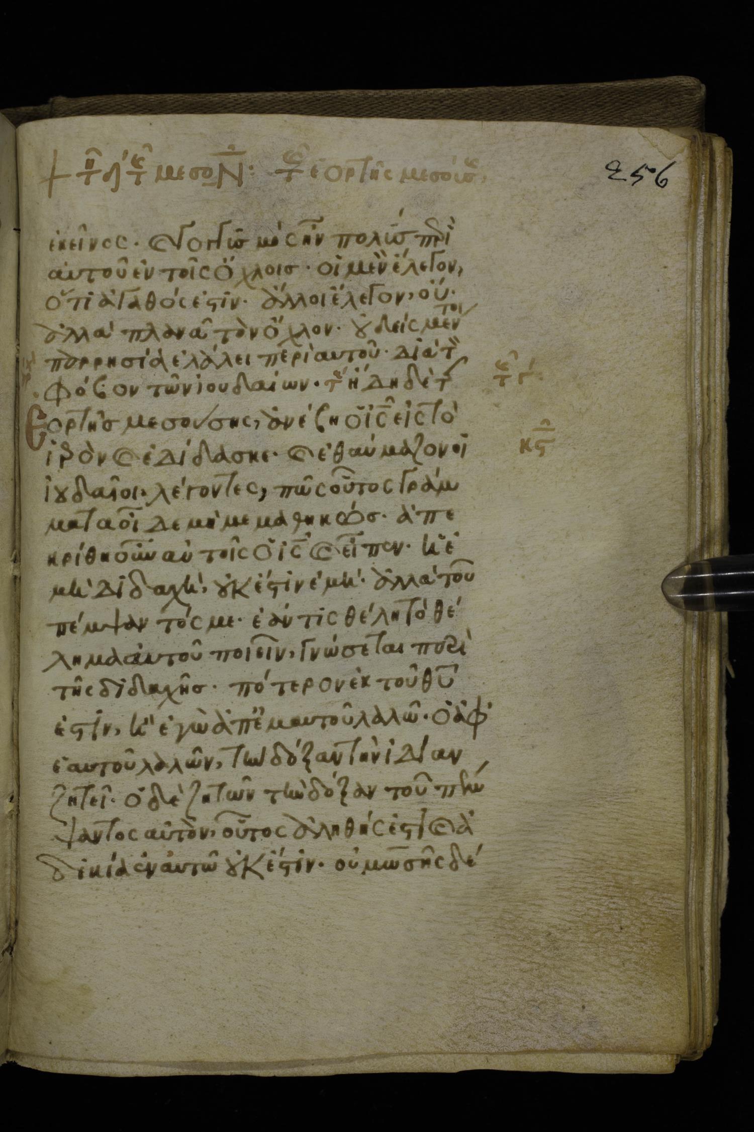 Fourteenth century minuscule of the Gospels on parchment; 302 leaves, 1 column, 19-21 lines per column. Images were taken at the National Library of Greece in Athens.