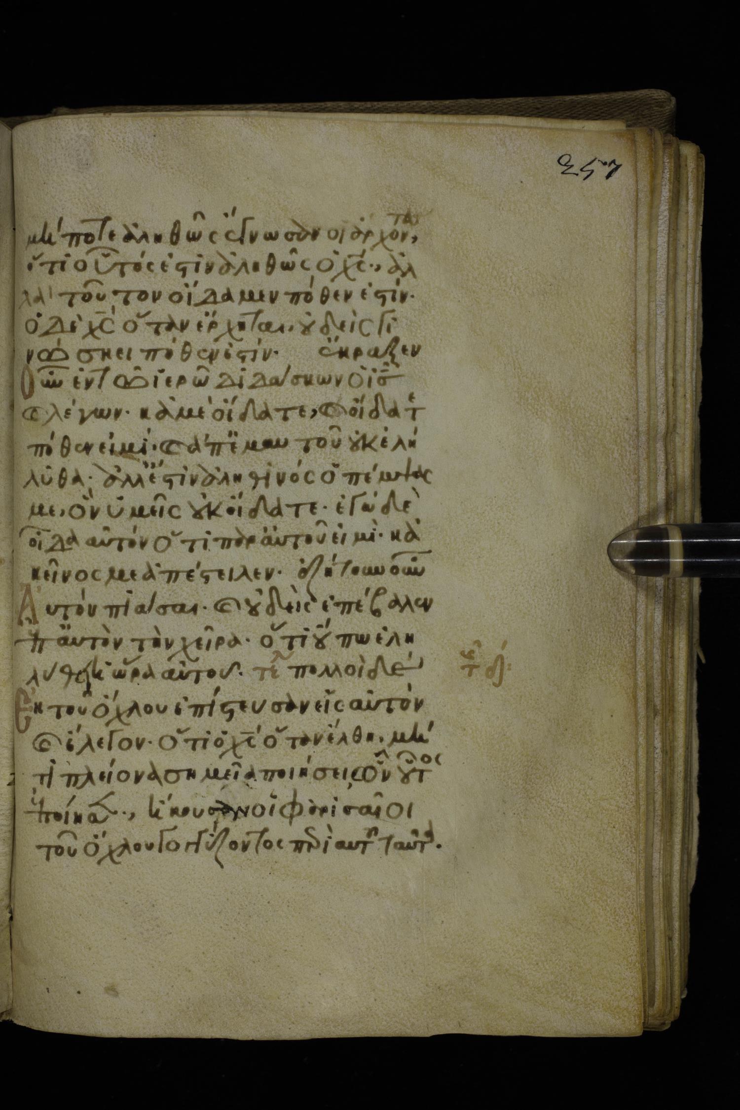 Fourteenth century minuscule of the Gospels on parchment; 302 leaves, 1 column, 19-21 lines per column. Images were taken at the National Library of Greece in Athens.