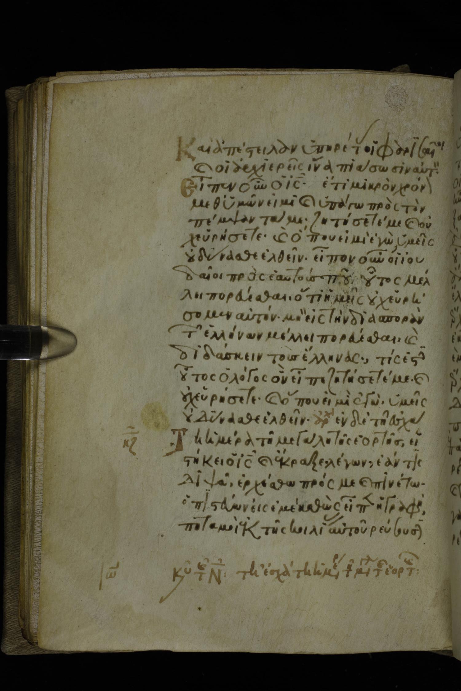 Fourteenth century minuscule of the Gospels on parchment; 302 leaves, 1 column, 19-21 lines per column. Images were taken at the National Library of Greece in Athens.