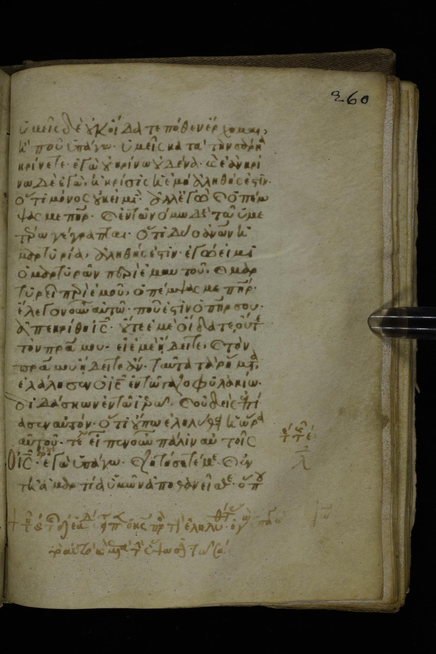 Fourteenth century minuscule of the Gospels on parchment; 302 leaves, 1 column, 19-21 lines per column. Images were taken at the National Library of Greece in Athens.