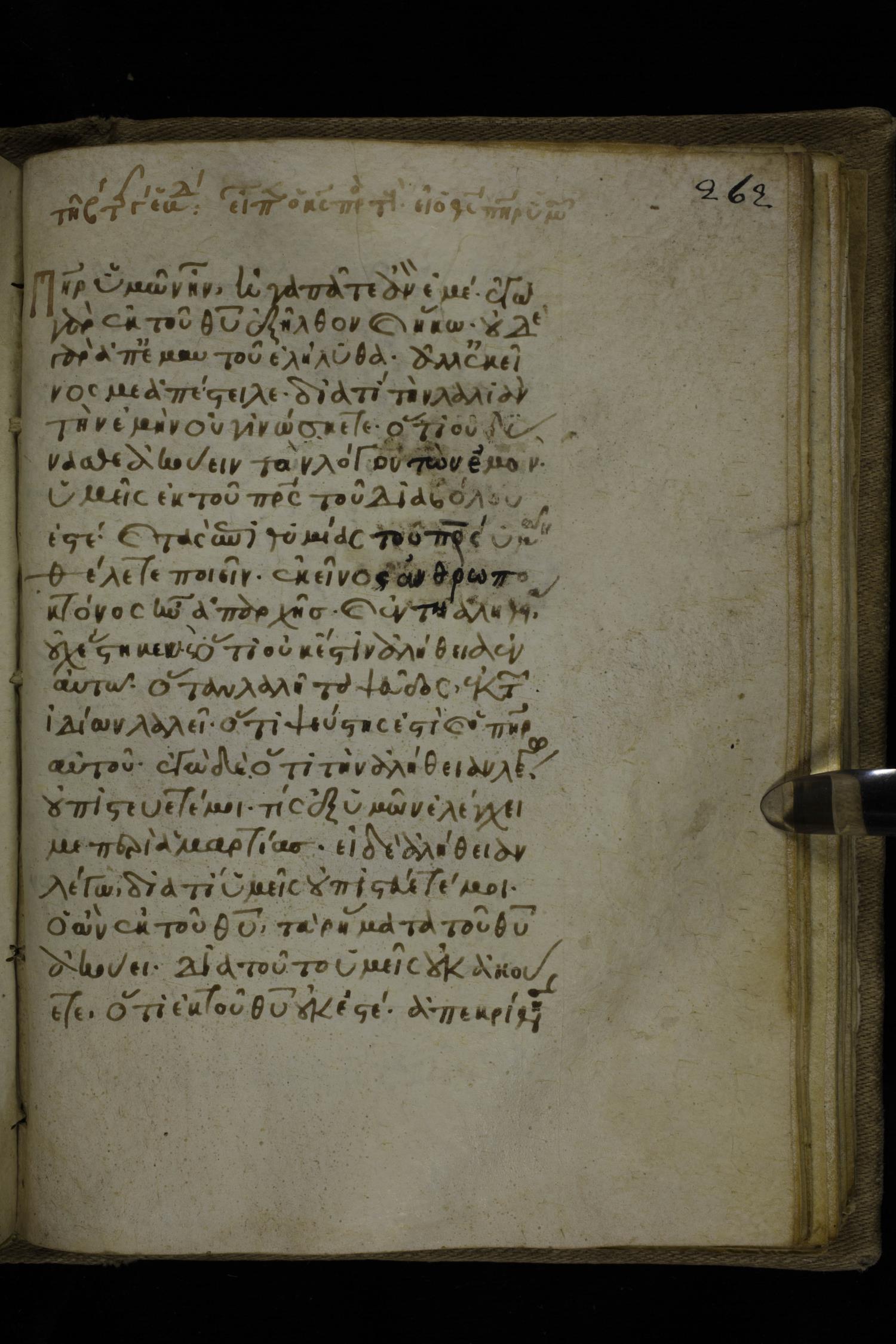 Fourteenth century minuscule of the Gospels on parchment; 302 leaves, 1 column, 19-21 lines per column. Images were taken at the National Library of Greece in Athens.