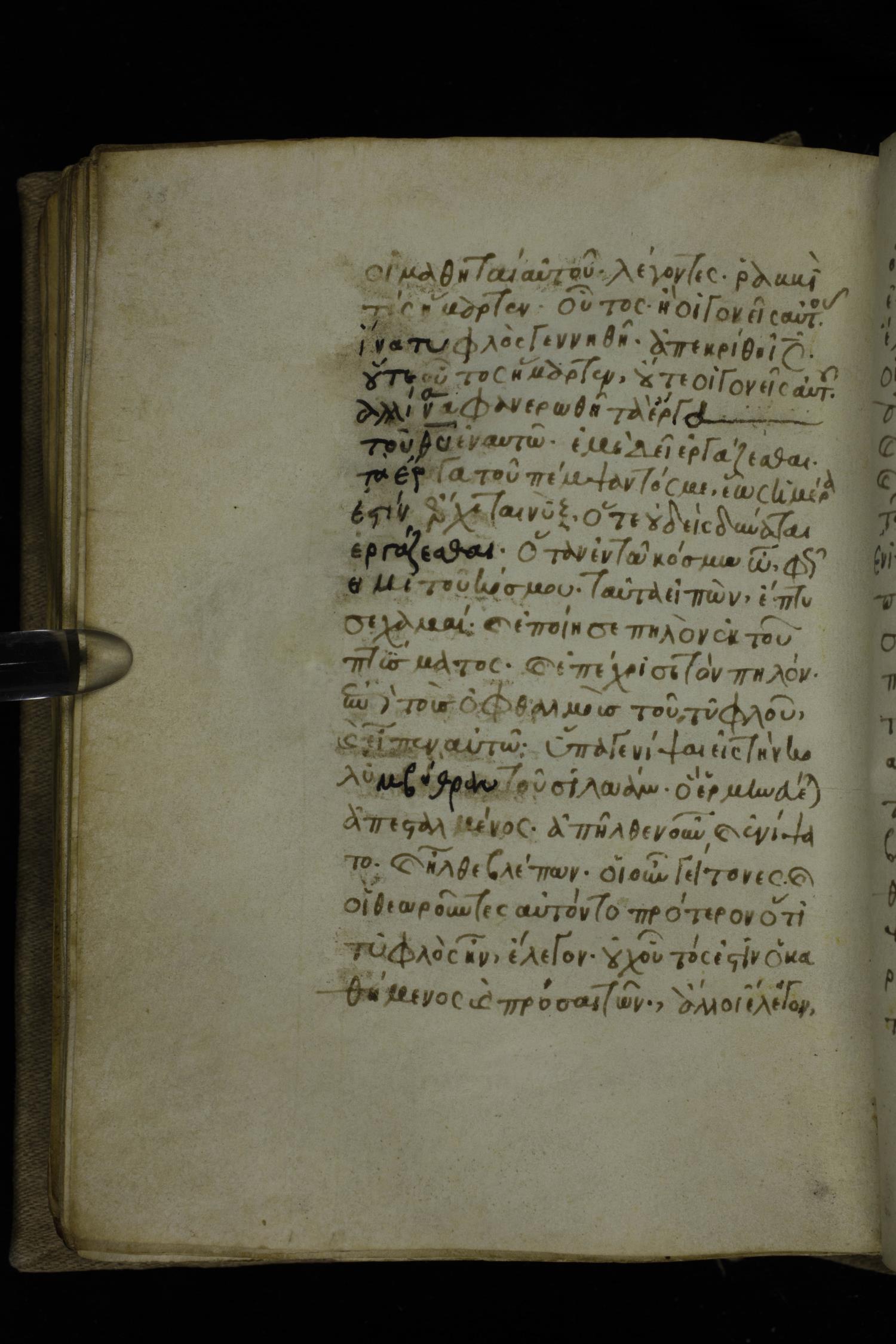Fourteenth century minuscule of the Gospels on parchment; 302 leaves, 1 column, 19-21 lines per column. Images were taken at the National Library of Greece in Athens.