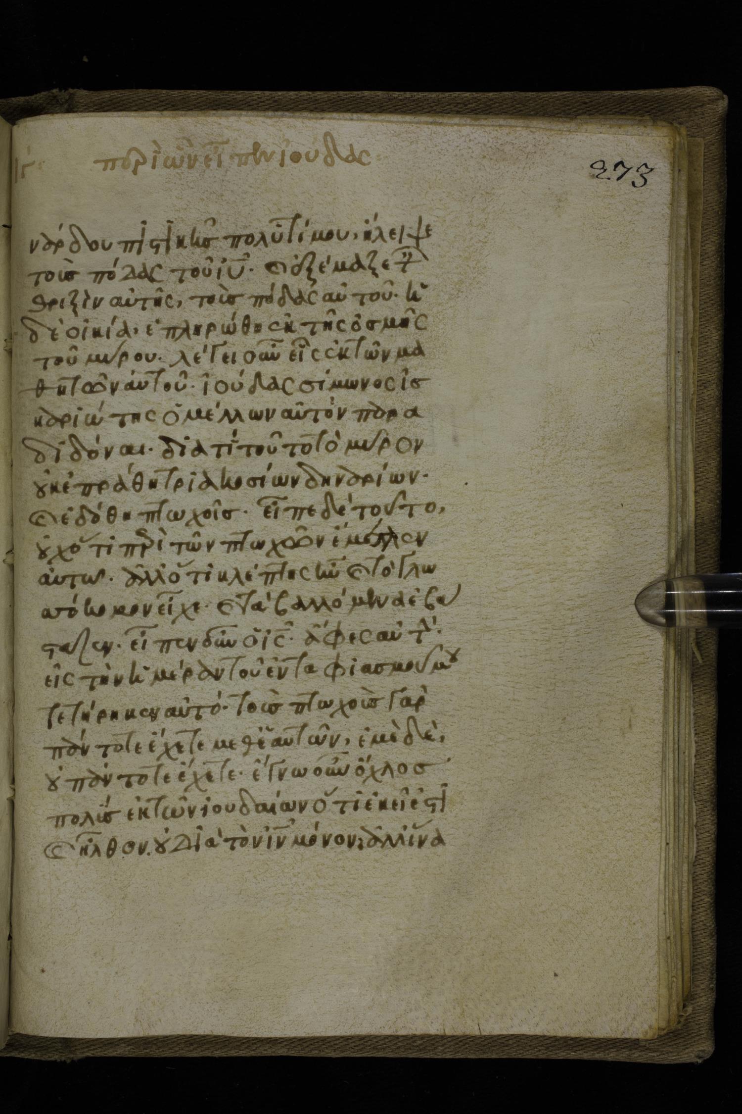 Fourteenth century minuscule of the Gospels on parchment; 302 leaves, 1 column, 19-21 lines per column. Images were taken at the National Library of Greece in Athens.