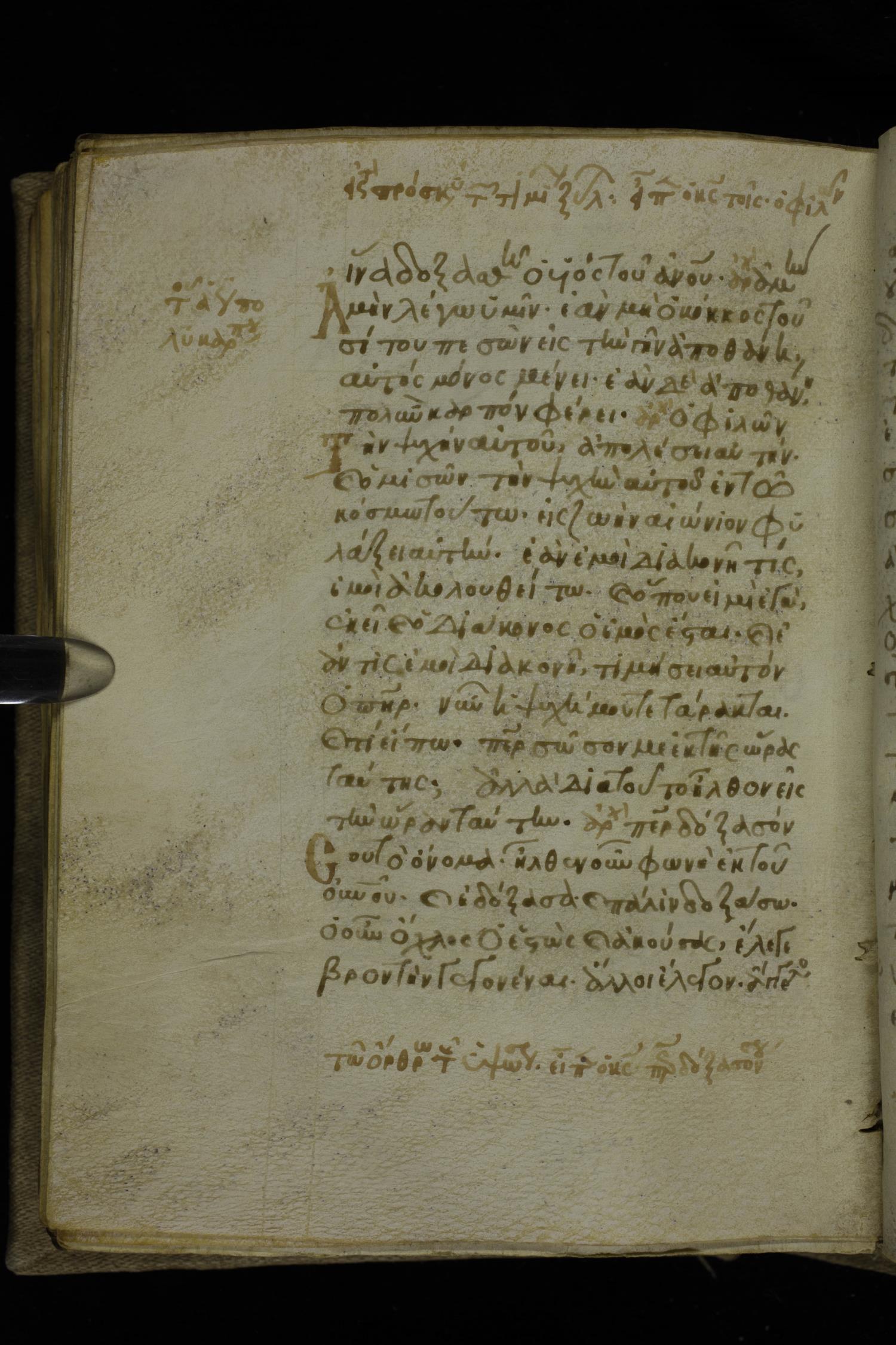 Fourteenth century minuscule of the Gospels on parchment; 302 leaves, 1 column, 19-21 lines per column. Images were taken at the National Library of Greece in Athens.