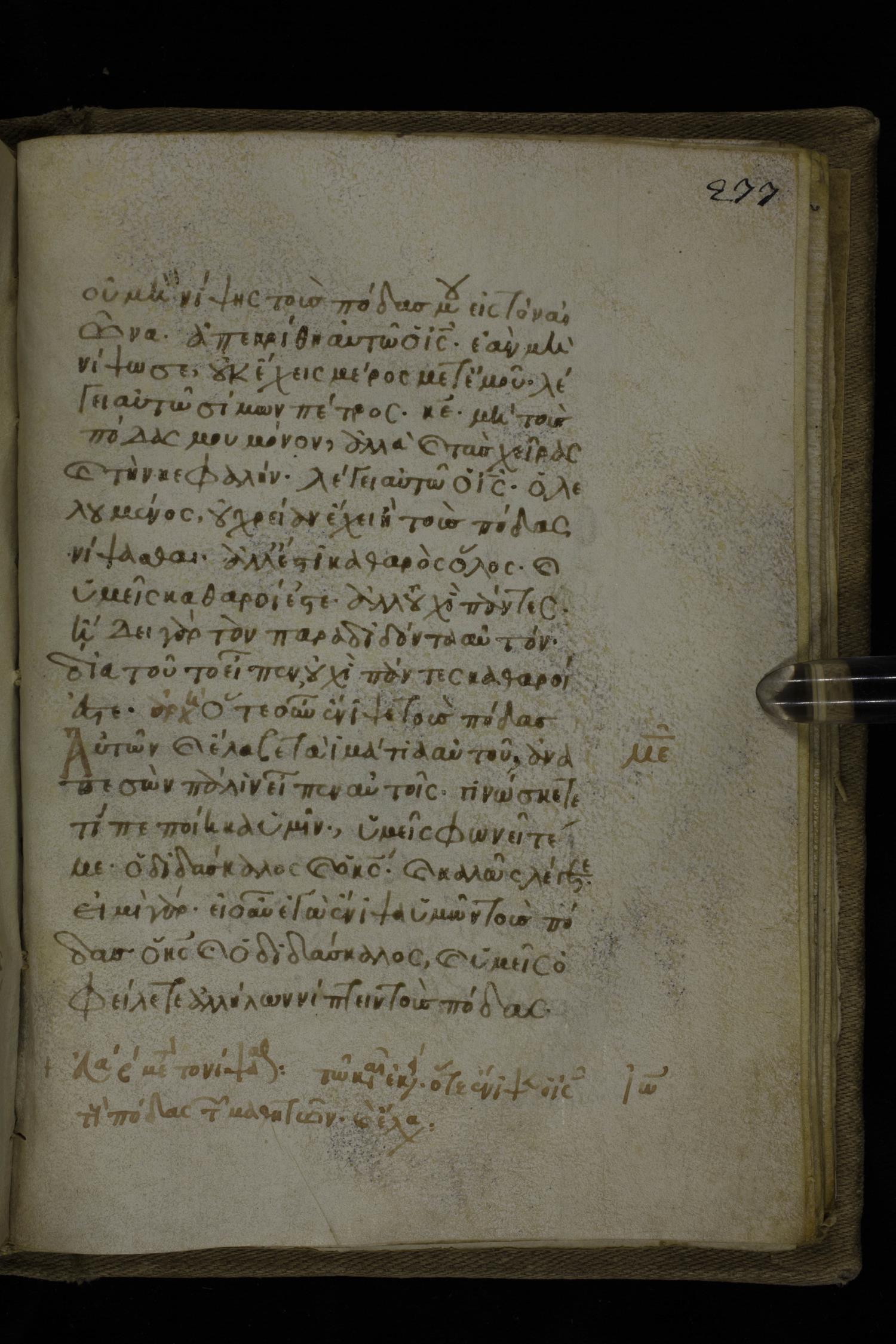 Fourteenth century minuscule of the Gospels on parchment; 302 leaves, 1 column, 19-21 lines per column. Images were taken at the National Library of Greece in Athens.