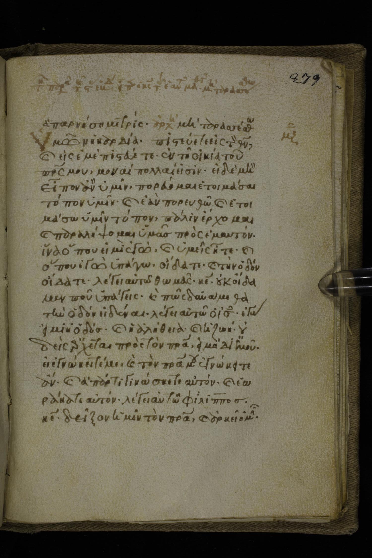 Fourteenth century minuscule of the Gospels on parchment; 302 leaves, 1 column, 19-21 lines per column. Images were taken at the National Library of Greece in Athens.