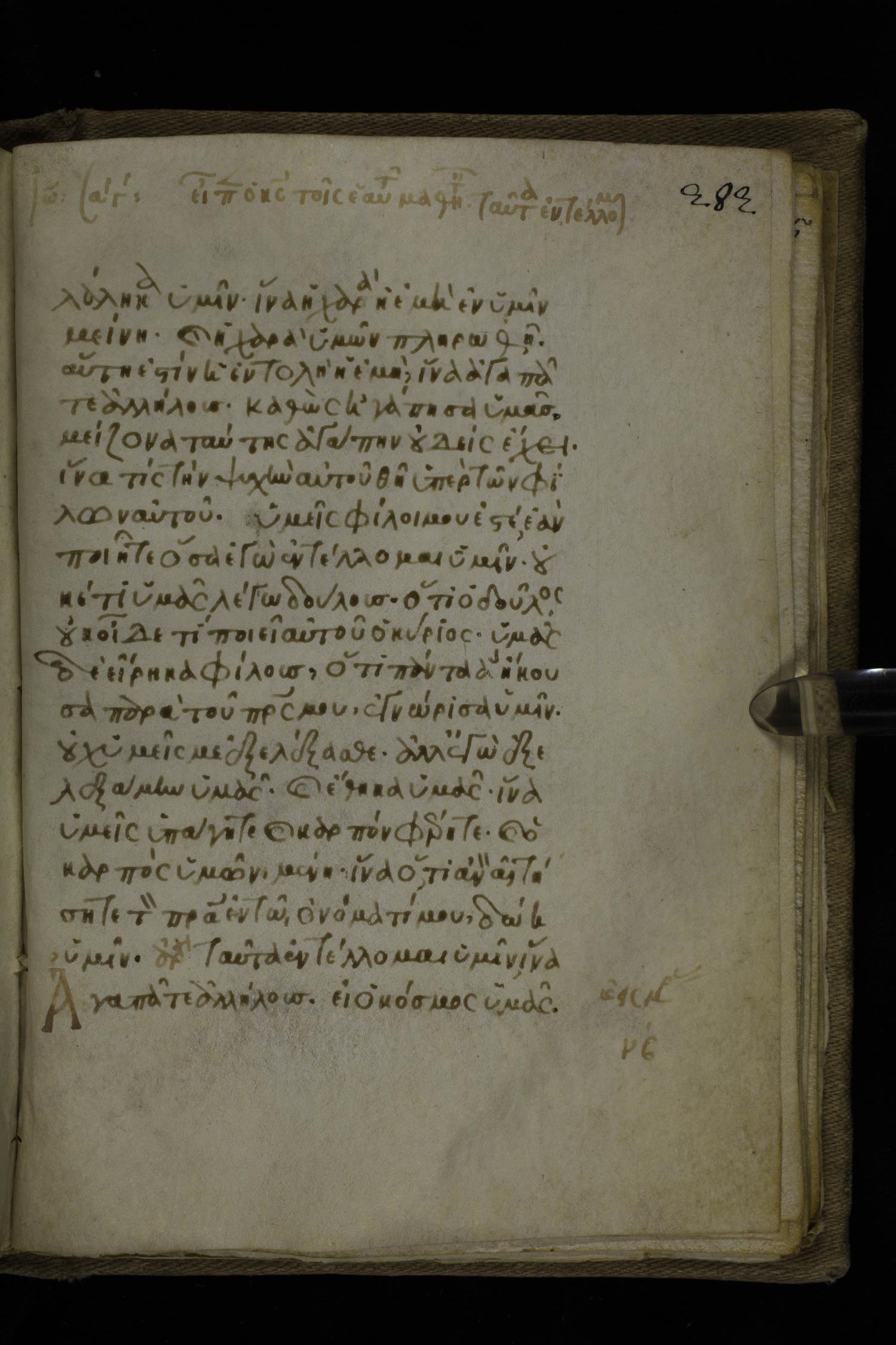 Fourteenth century minuscule of the Gospels on parchment; 302 leaves, 1 column, 19-21 lines per column. Images were taken at the National Library of Greece in Athens.