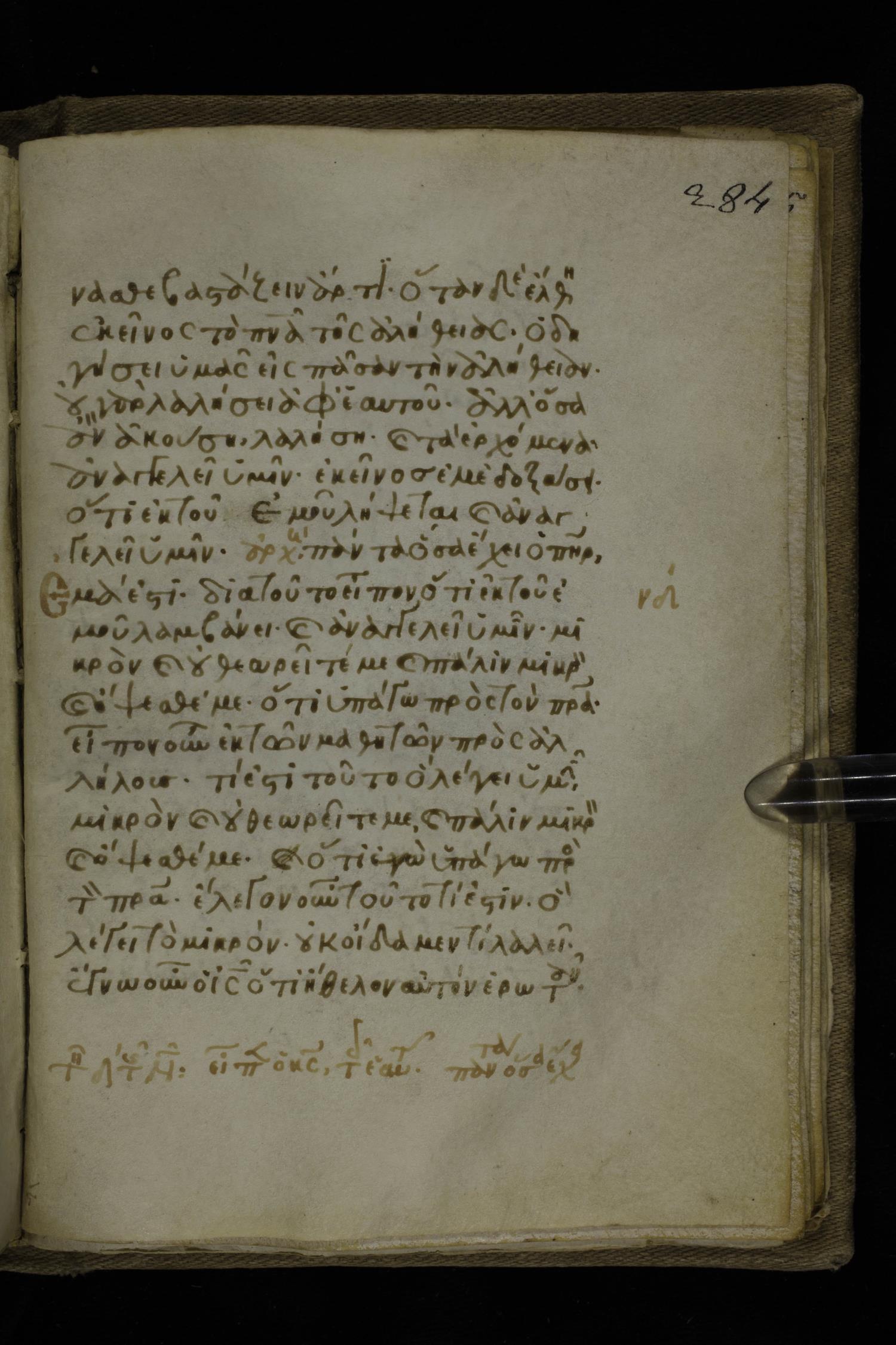 Fourteenth century minuscule of the Gospels on parchment; 302 leaves, 1 column, 19-21 lines per column. Images were taken at the National Library of Greece in Athens.